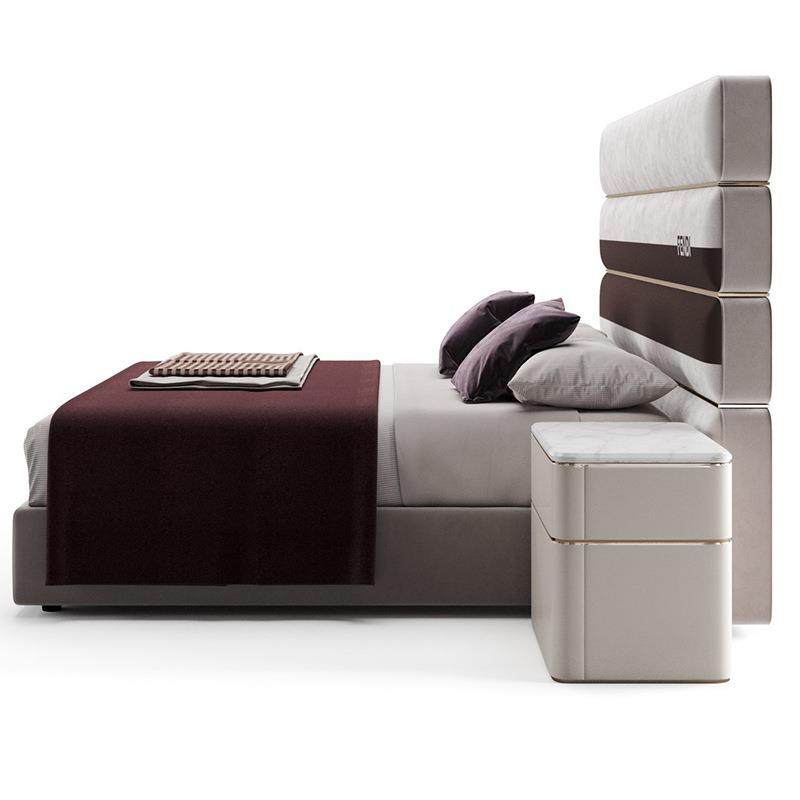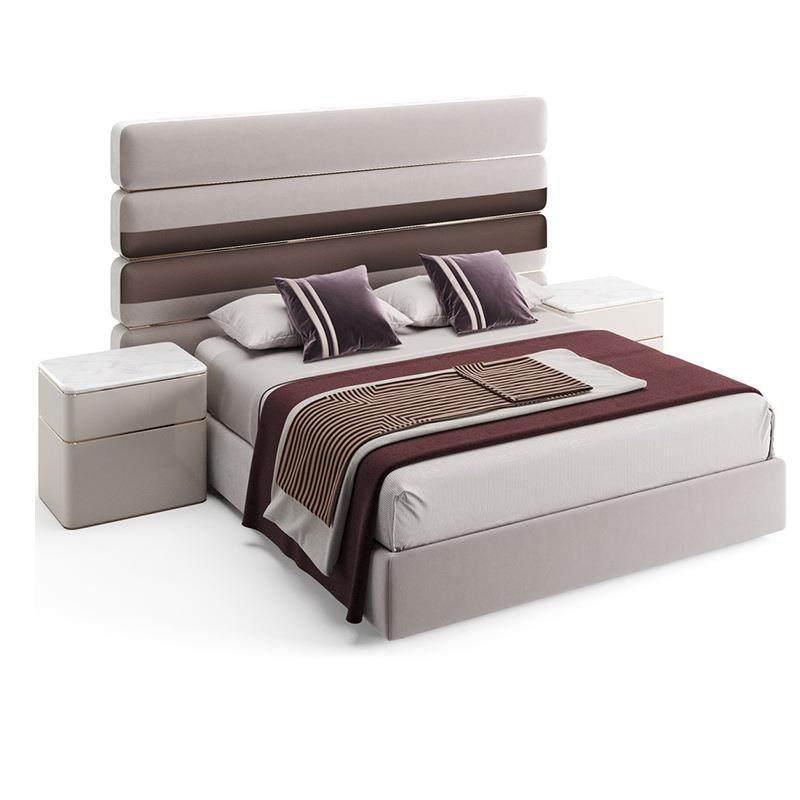意式轻奢磨砂布艺双人床大平层主卧设计师款高端高靠背婚床bed