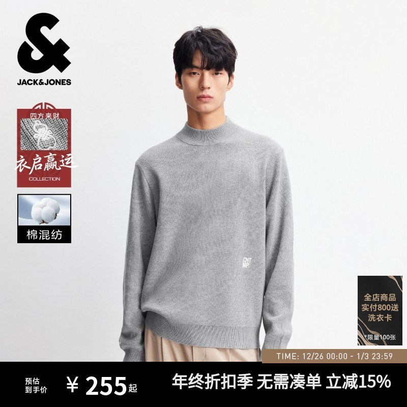 【衣启赢运】杰克琼斯男装秋冬毛衣针织衫保暖字母刺绣经典