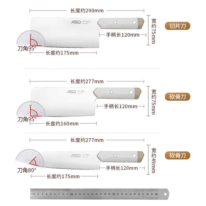 爱仕达菜刀家用不锈钢锋利切片刀切骨刀水果刀厨师专用女士刀具
