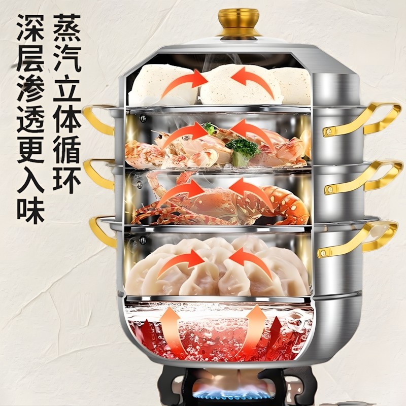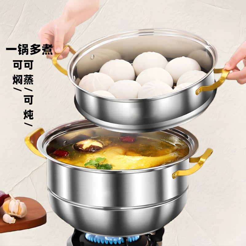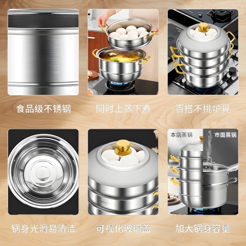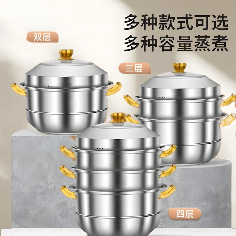 蒸锅家用不锈钢三层加厚小型大号蒸笼电磁炉双层大容量燃气多层