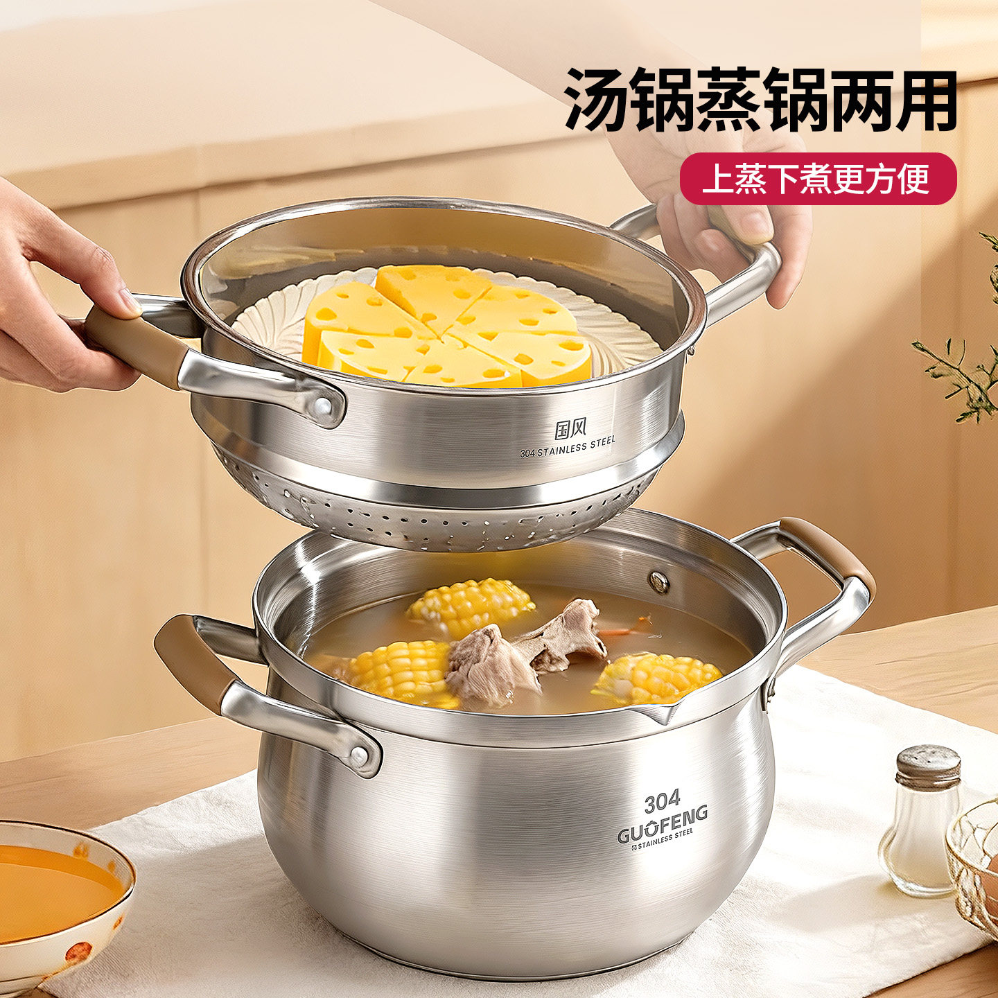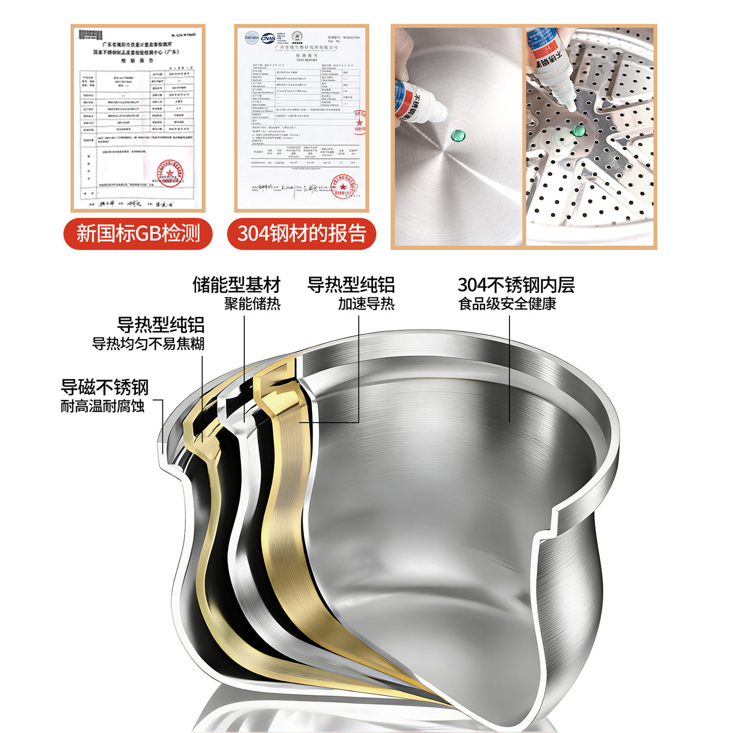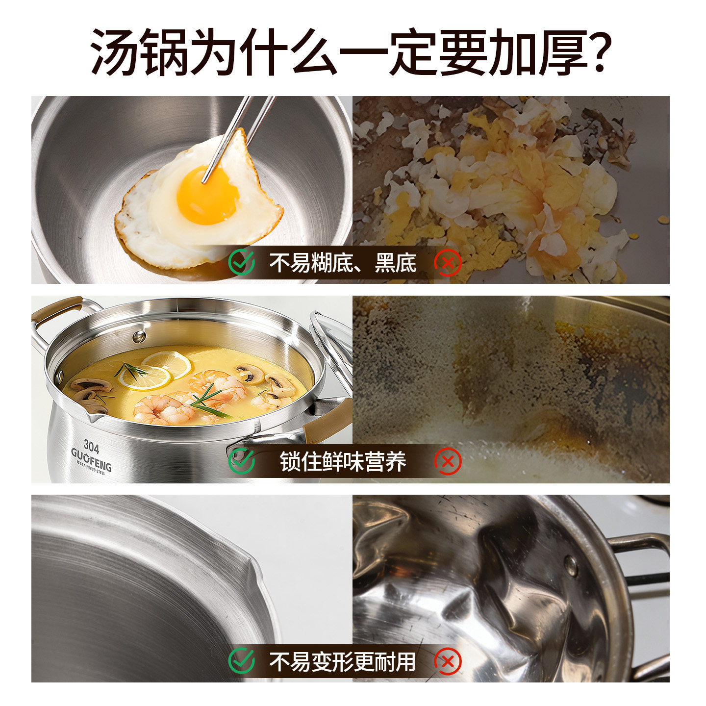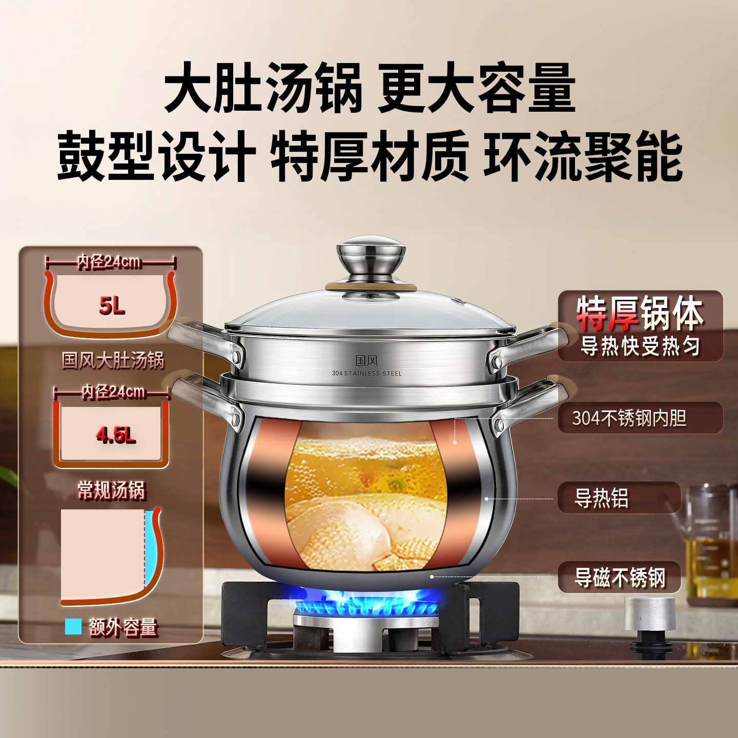 304不锈钢汤锅家用加厚大容量无涂层煮粥蒸锅燃气电磁炉用炖煮锅