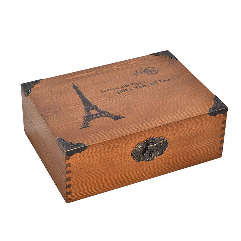 桌面收纳盒带锁木盒子密码箱复古实木首饰杂物小木箱子家用储物箱