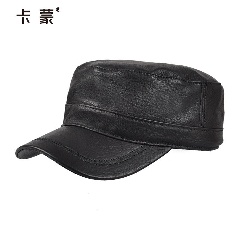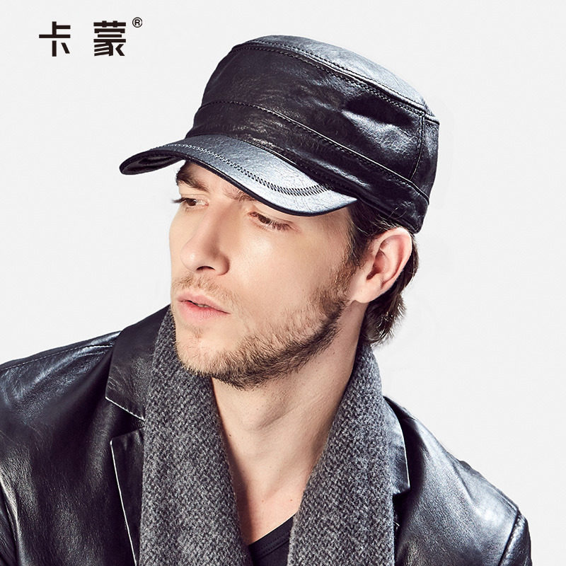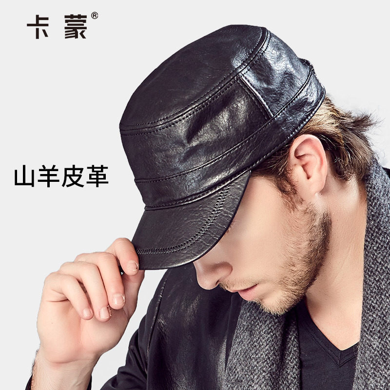 山羊皮帽子男士真皮帽户外时尚平顶帽秋冬真皮男帽冬季保暖鸭舌帽