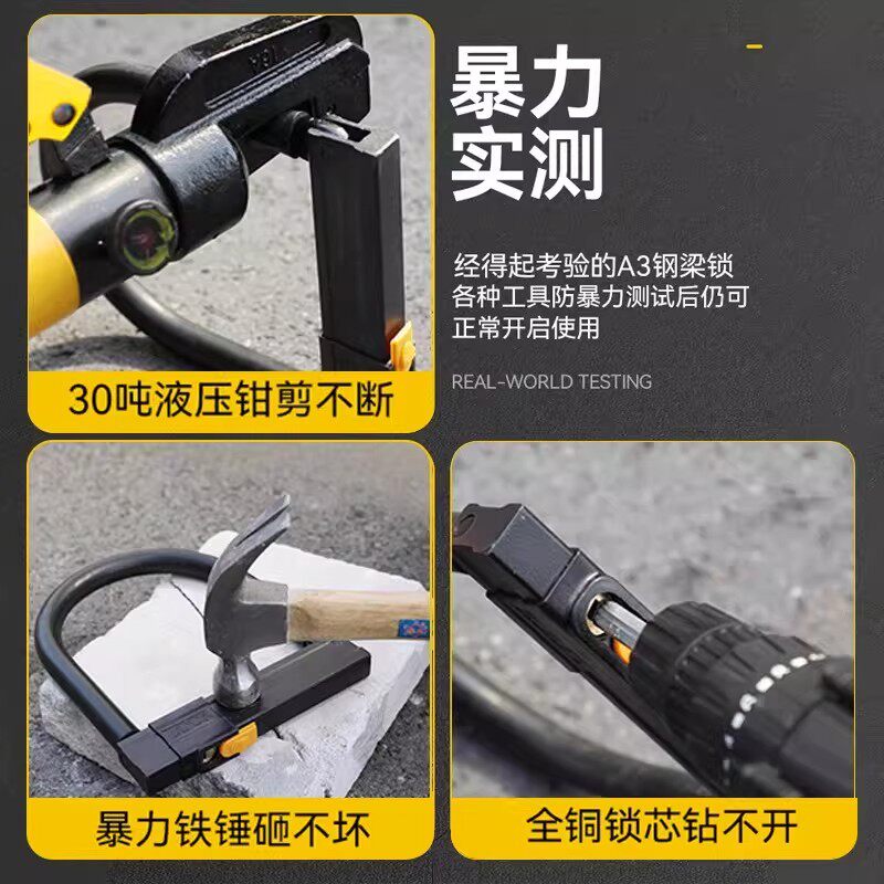 电动车锁防盗锁U型锁头电瓶摩托车锁防水便携山地自行车锁u形车锁
