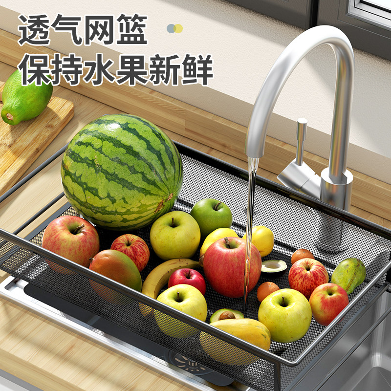 沥水篮厨房水槽304不锈钢沥水槽沥水架洗菜盆水池滤水篮碗盘碟架