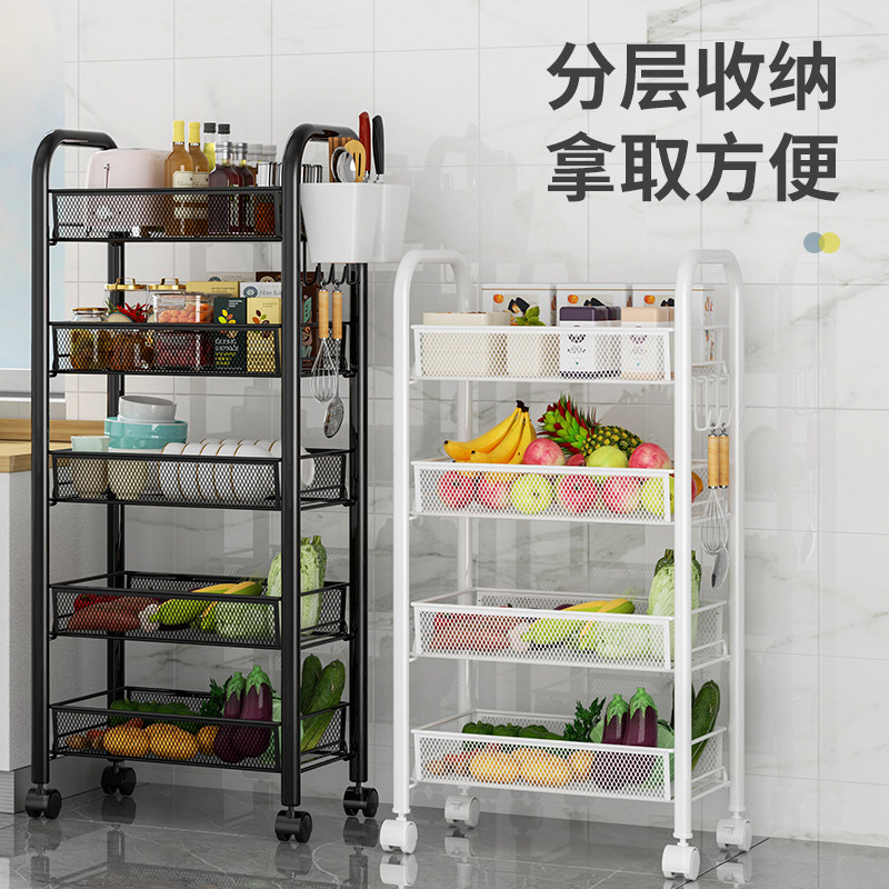 厨房置物架家用收纳架子落地多层用品小推车多功能蔬菜篮阳台旋转