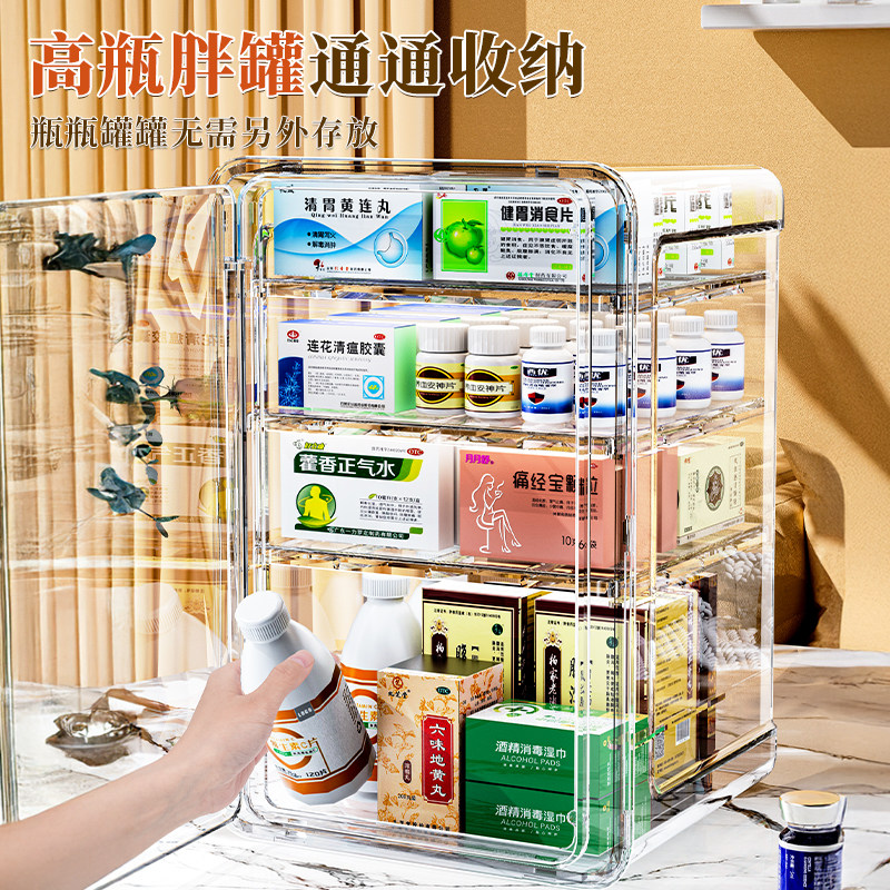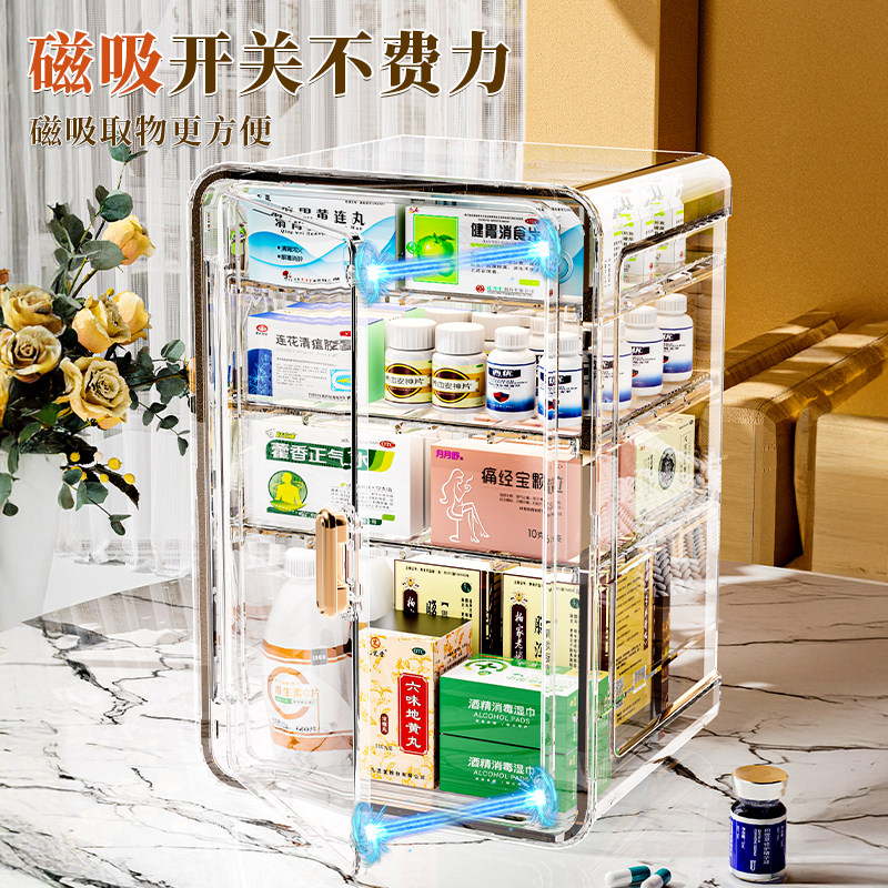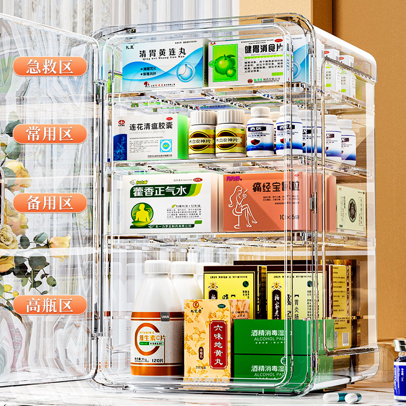 药品收纳盒柜门壁挂式免打孔透明多格家用常备急救药品置物箱