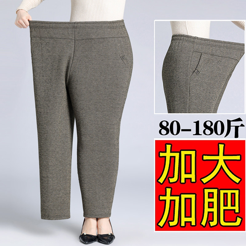 中老年人女裤秋冬加绒长裤外穿妈妈裤子宽松直筒高腰奶奶春秋大码