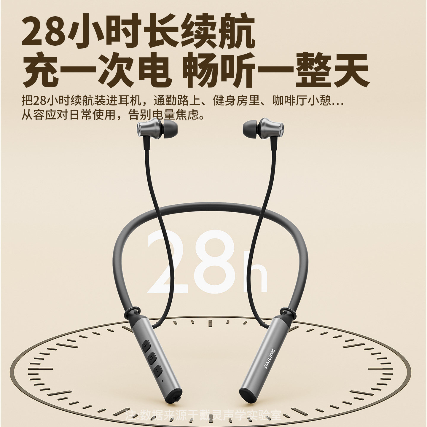 戴灵D4蓝牙颈挂式双模耳机新款硅麦降噪游戏运动跑步防水长续航