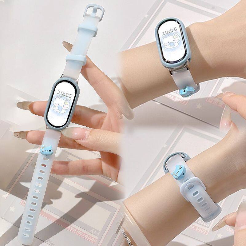 适用于小米手环10表带9/8腕带双色猫咪透明硅胶NFC版陶瓷版76543代小众潮男女生配件ins风蓝色紫色粉色