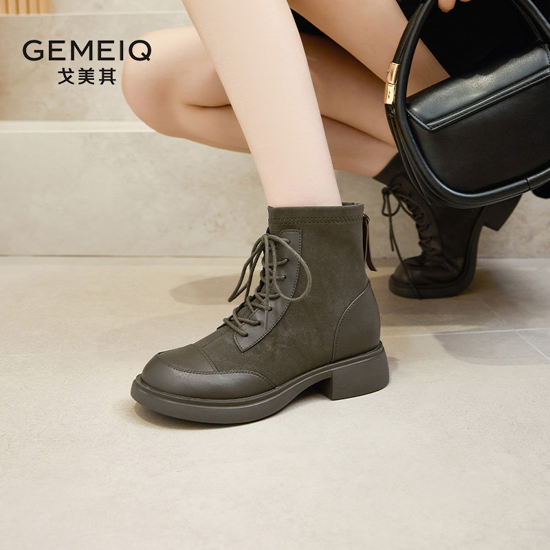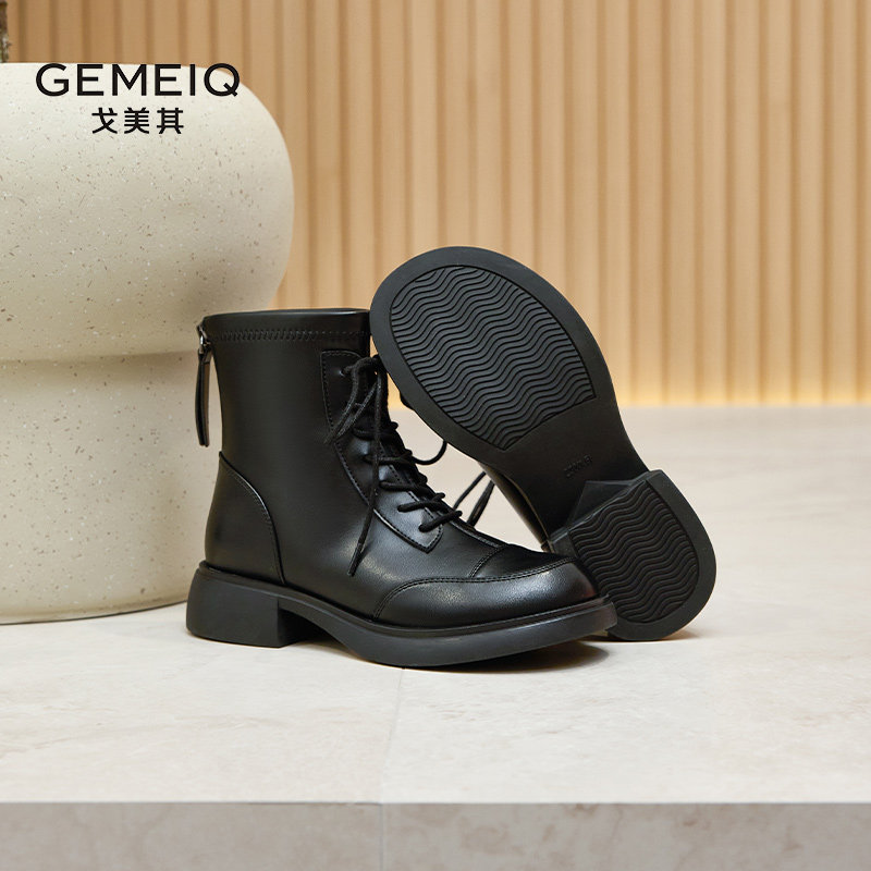 戈美其黑色靴子女2024年新款春季百搭短靴瘦瘦靴英伦风马丁靴女款
