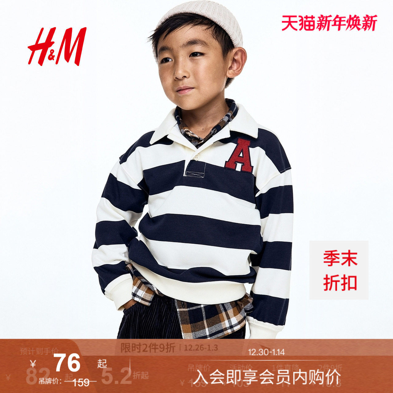 HM童装儿童男童卫衣2025冬季新款条纹布贴设计橄榄球衫1314124