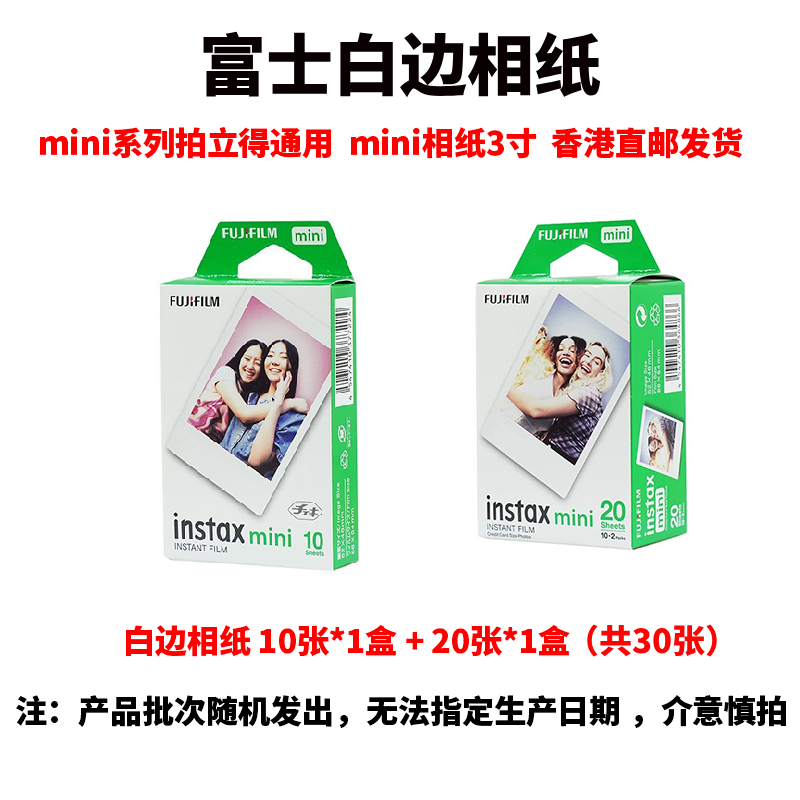 香港直邮富士立拍立得相纸mini系列白边三寸相纸适用于mini/12/40/90/41包装日期随机不包成像
