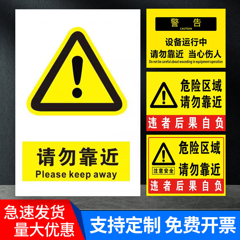 设备运行中请勿靠近危险区域请勿靠近警示牌工厂车间标识铝板机器运转当心危险提示牌贴纸安全生产标志牌定制