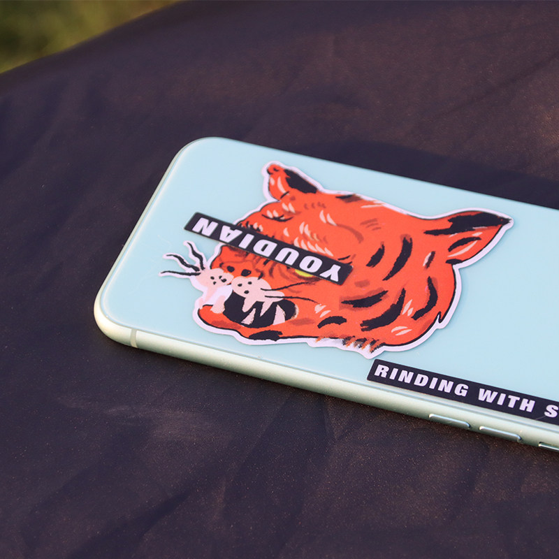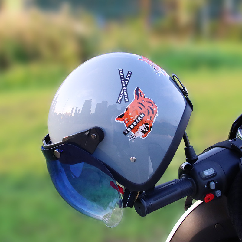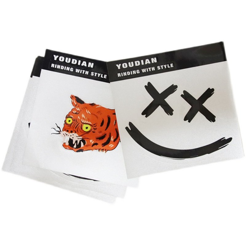电动车贴纸头盔反光贴个性防水改装贴摩托车机车电摩补丁笑脸老虎