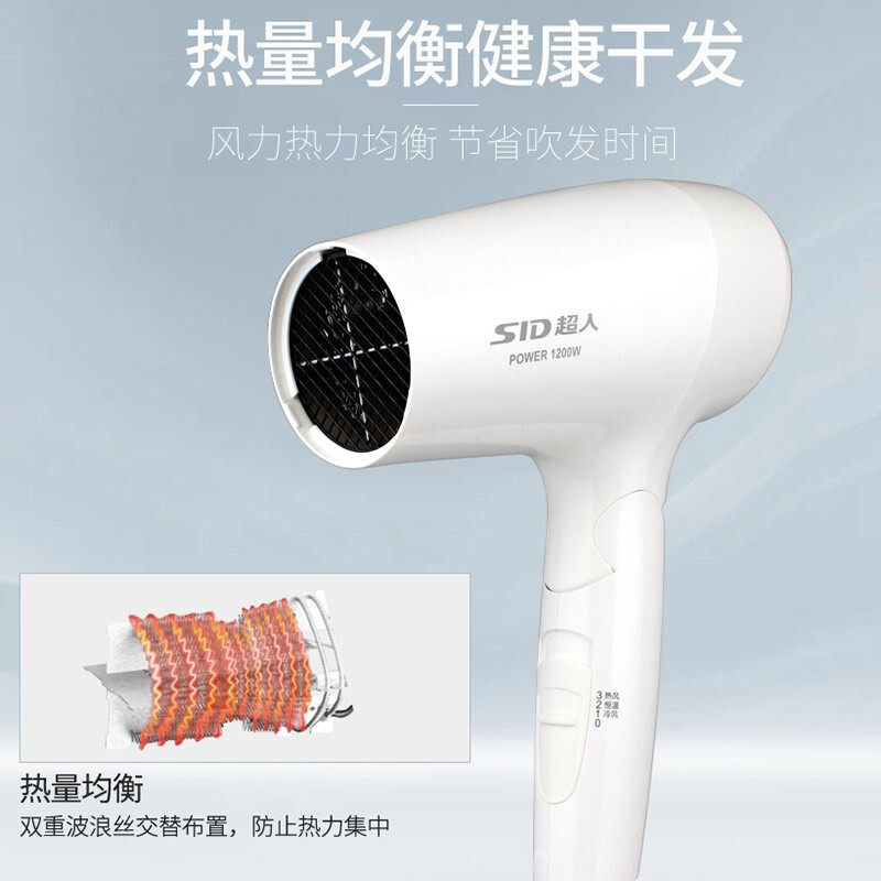 SID/超人电吹风机RD1210学生宿舍速干冷热风家用1200W可折叠酒店