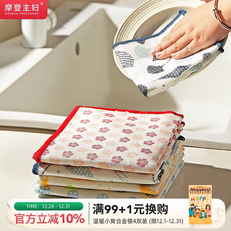 摩登主妇印花抹布洗碗布不沾油厨房专用吸水不掉毛家用清洁洗碗巾