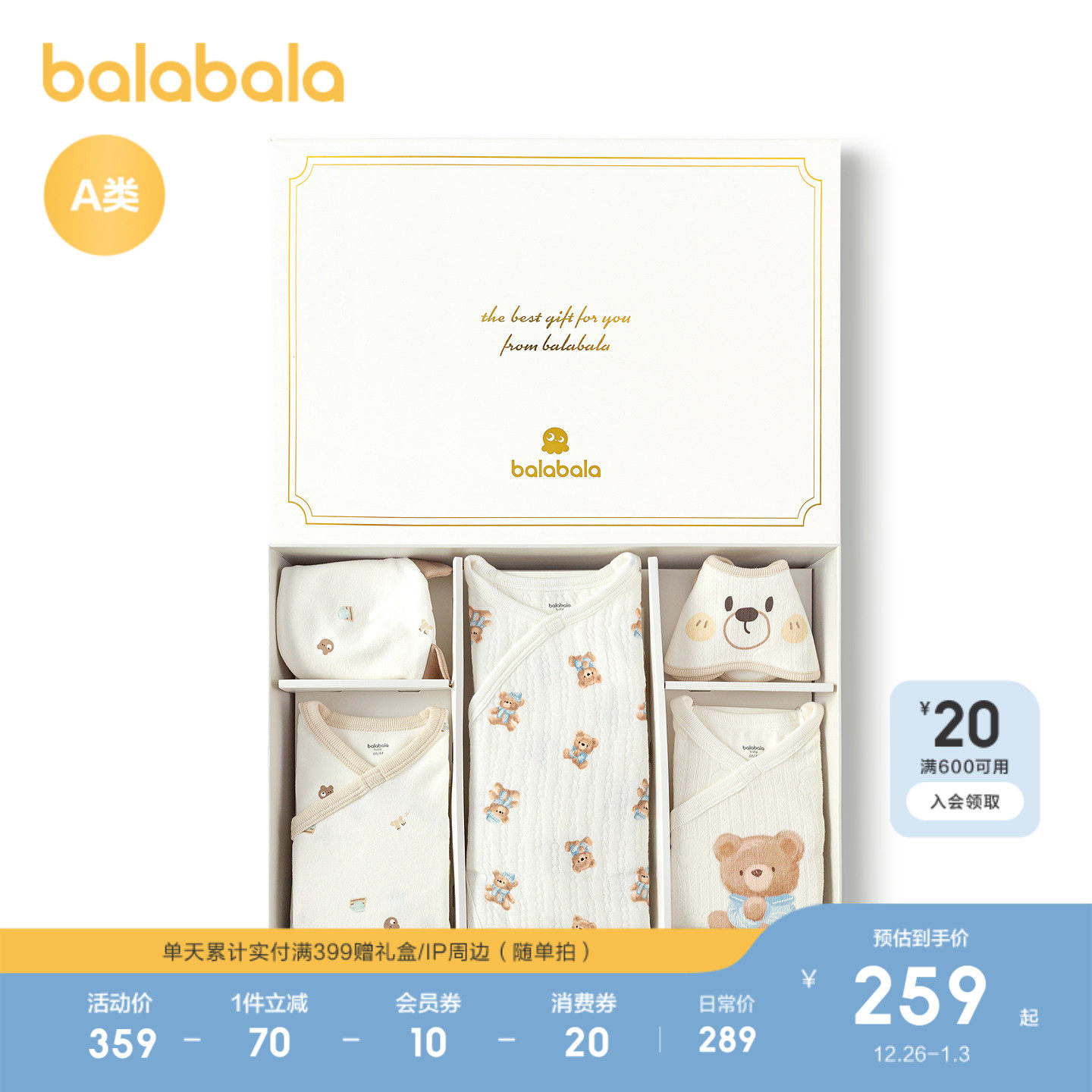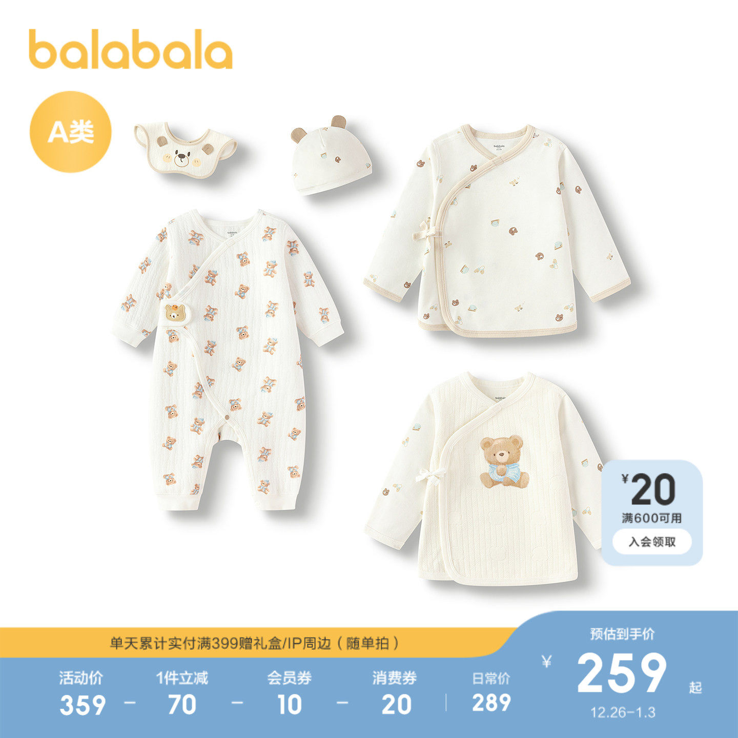 【商场同款】巴拉巴拉新生儿用品大全初生宝宝衣服满月礼五件装萌