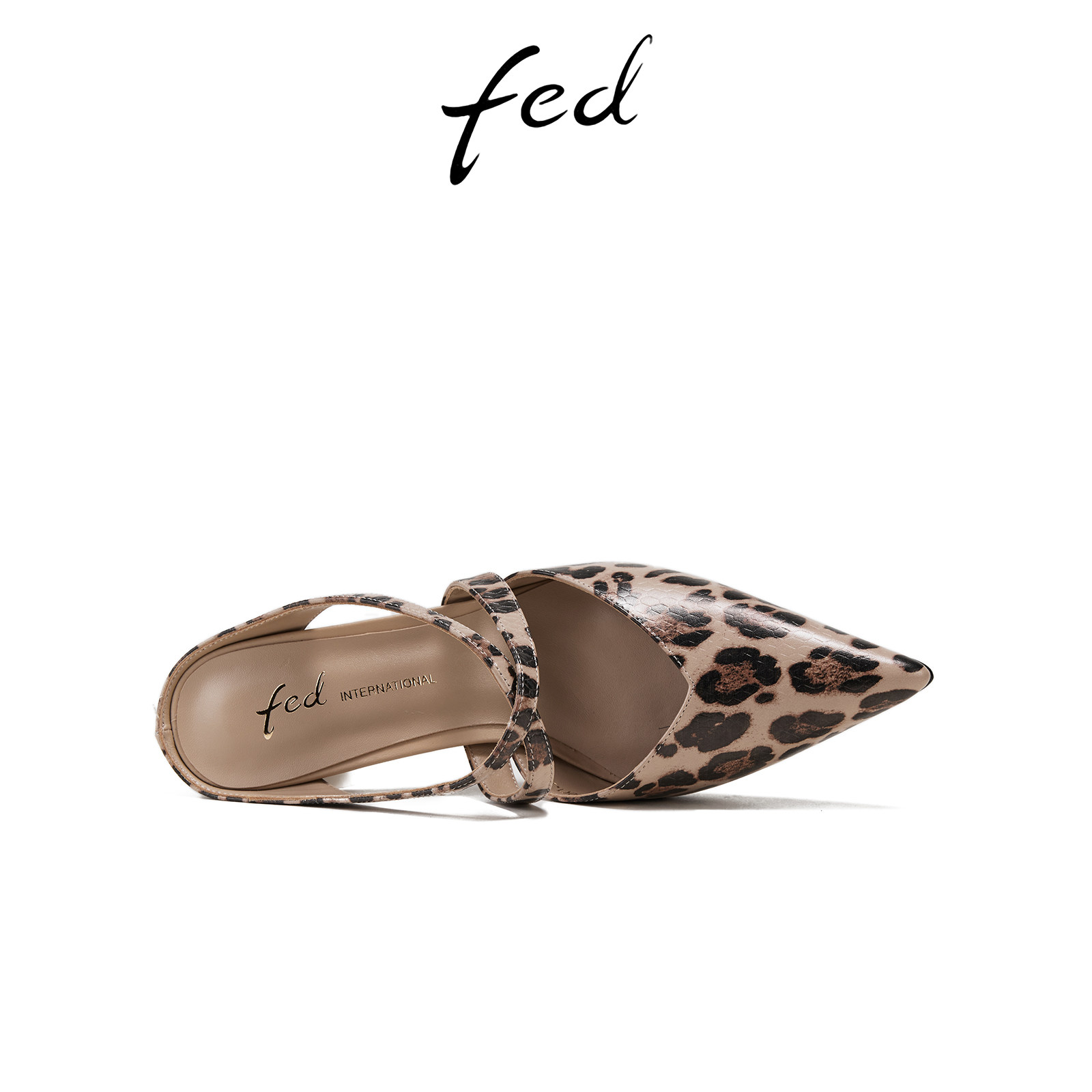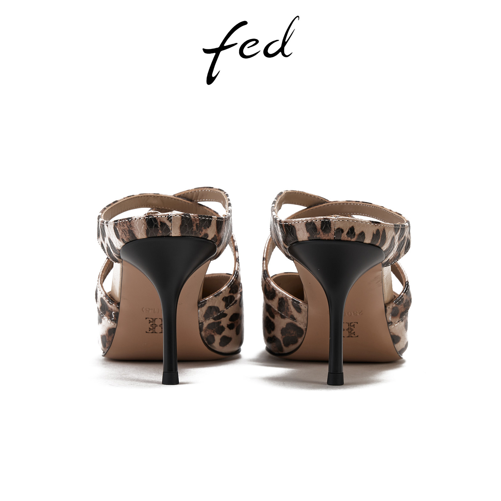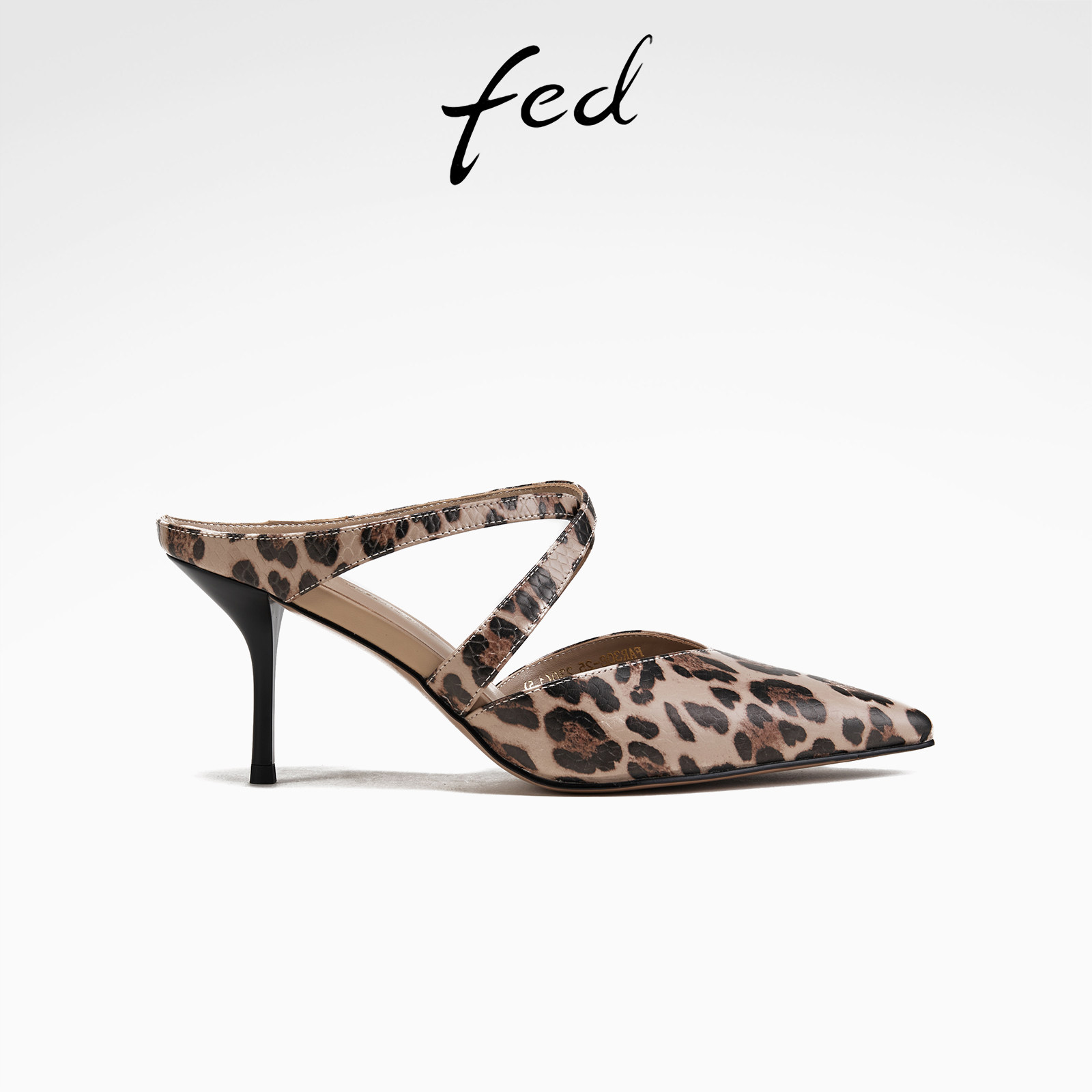 fed豹纹包头半拖春季新款女鞋交叉带穆勒鞋凉拖鞋女S0222-ZFA308