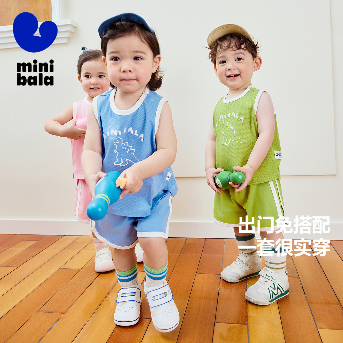 迷你巴拉巴拉短袖套装男女童宝宝篮球套婴儿衣服背心短裤夏季新款
