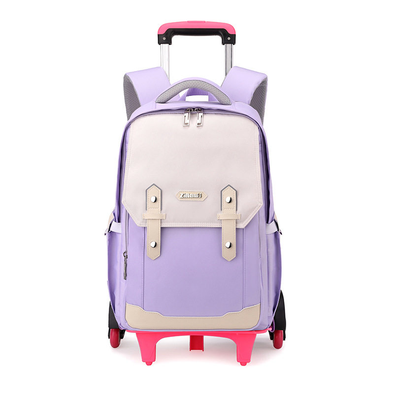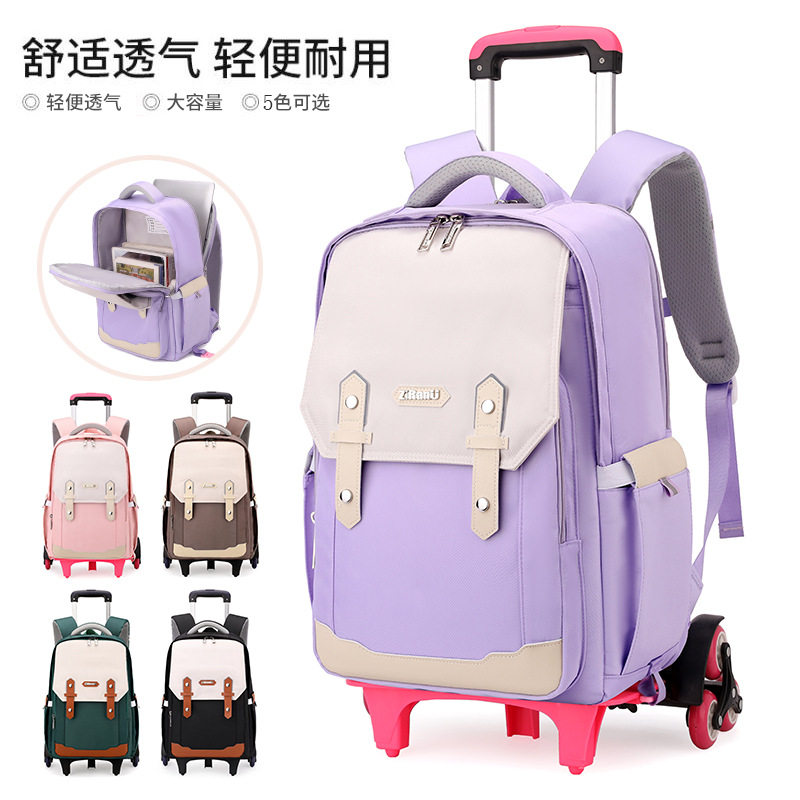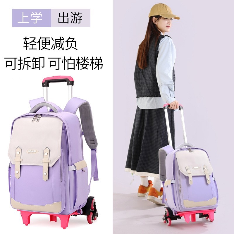 自然鱼高颜值拉杆背包六轮爬楼梯批发双肩包初中生小学生护脊书包