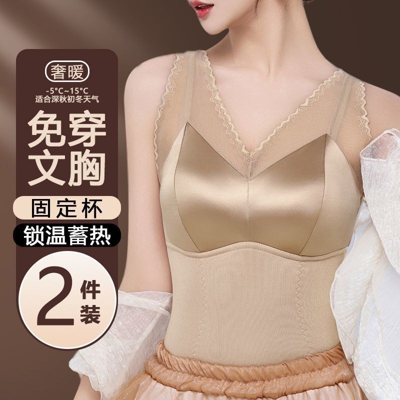 半练方领宽肩保暖背心女秋冬新款带胸垫吊带吸湿发热内搭显瘦打底