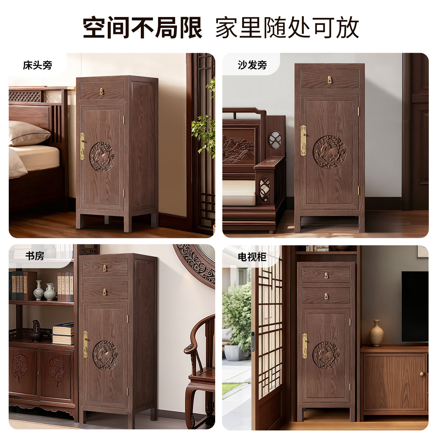 虎牌保险柜家用2025新款防盗家庭办公室中式复古保险箱隐形抽屉式玄关柜子指纹密码箱客厅纯实木大容量床头柜