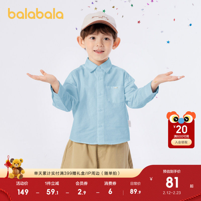 巴拉巴拉童装男童长袖衬衫纯棉儿童上衣2025新春秋学院风时尚百搭