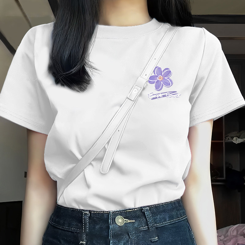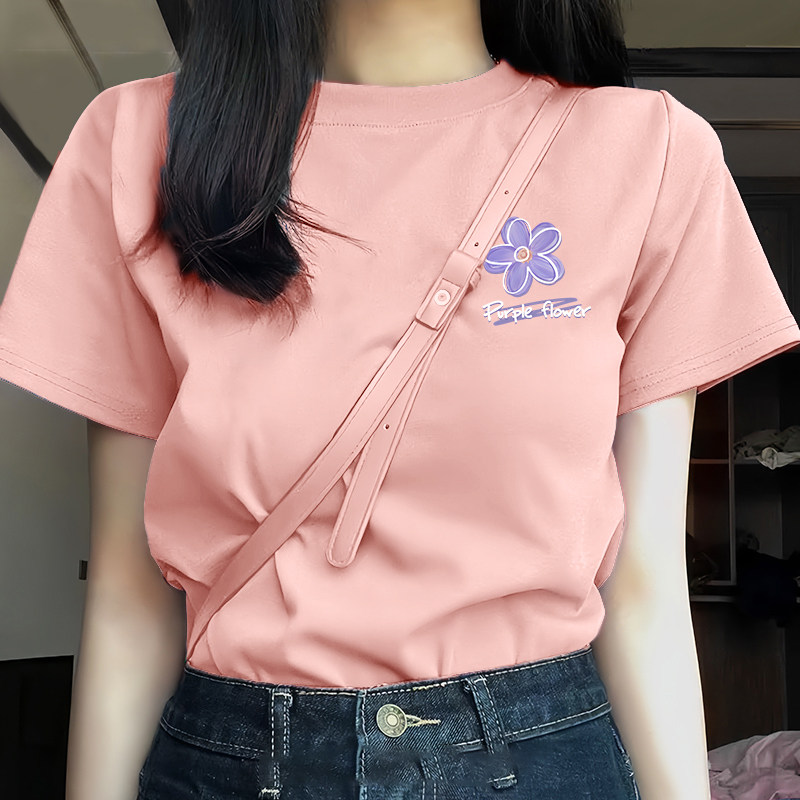 KWV真维斯紫色短袖t恤女2025新款爆款夏季正肩纯棉别致t恤上衣女