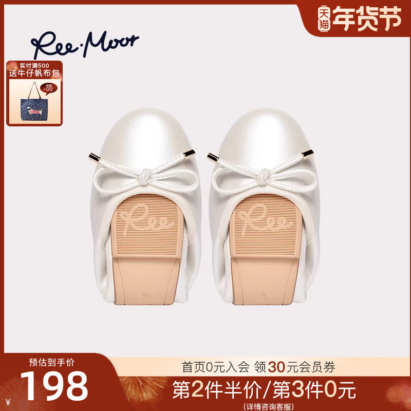 REEMOOR睿慕2025年秋季新款蝴蝶结蛋卷鞋圆头浅口平底单鞋女鞋