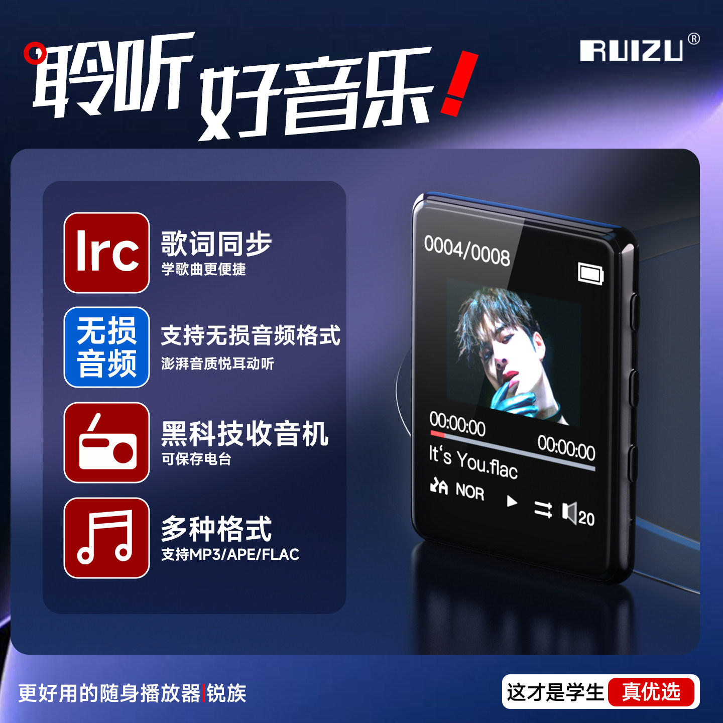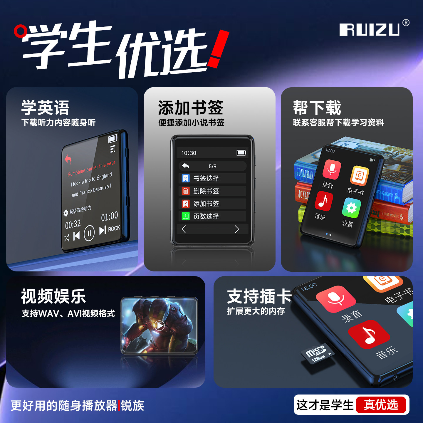 锐族X02mp3mp4随身听学生版高中专用播放器看小说听歌神器蓝牙mp5