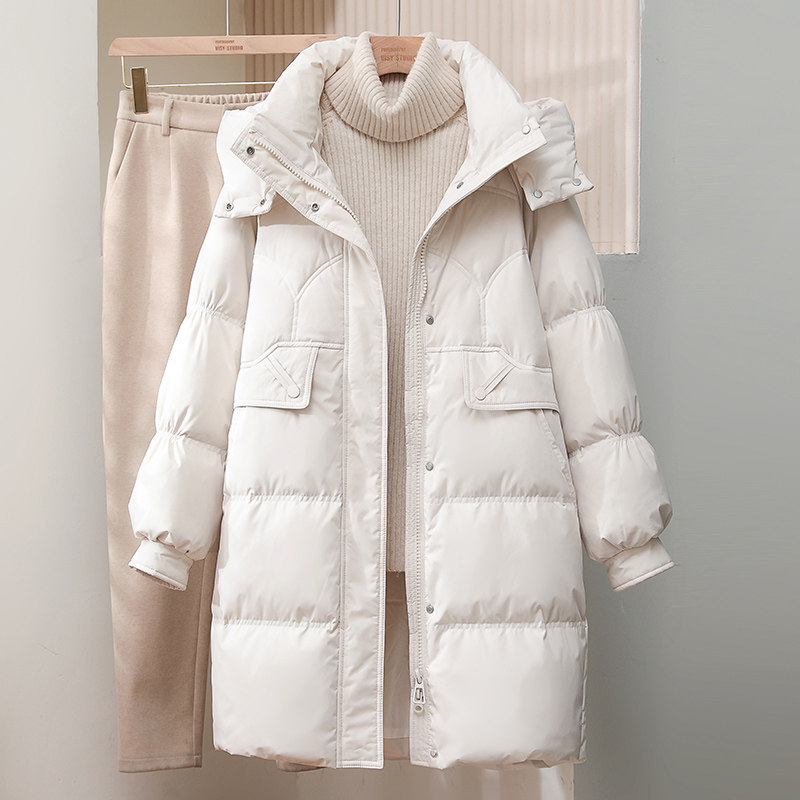 2025年新款羽绒服女款秋冬长款加厚白鸭绒时尚白色黑色紫色卡其色