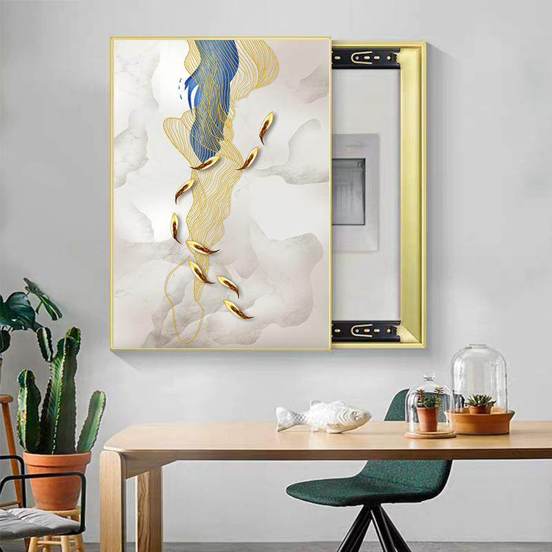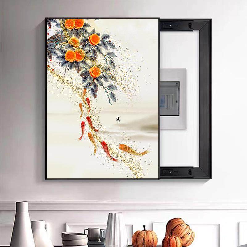 九鱼图电表箱装饰画竖款现代简约配电箱壁画轻奢电闸遮挡开关挂画