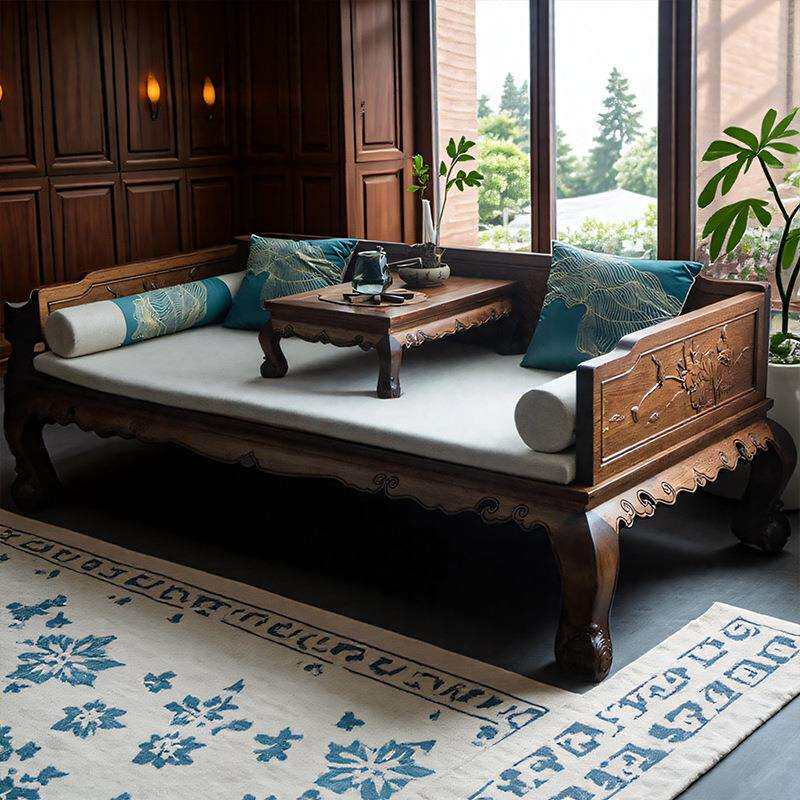 宋代美学风罗汉床新中式全实木榫卯仿古罗汉榻小户型简约沙发两用