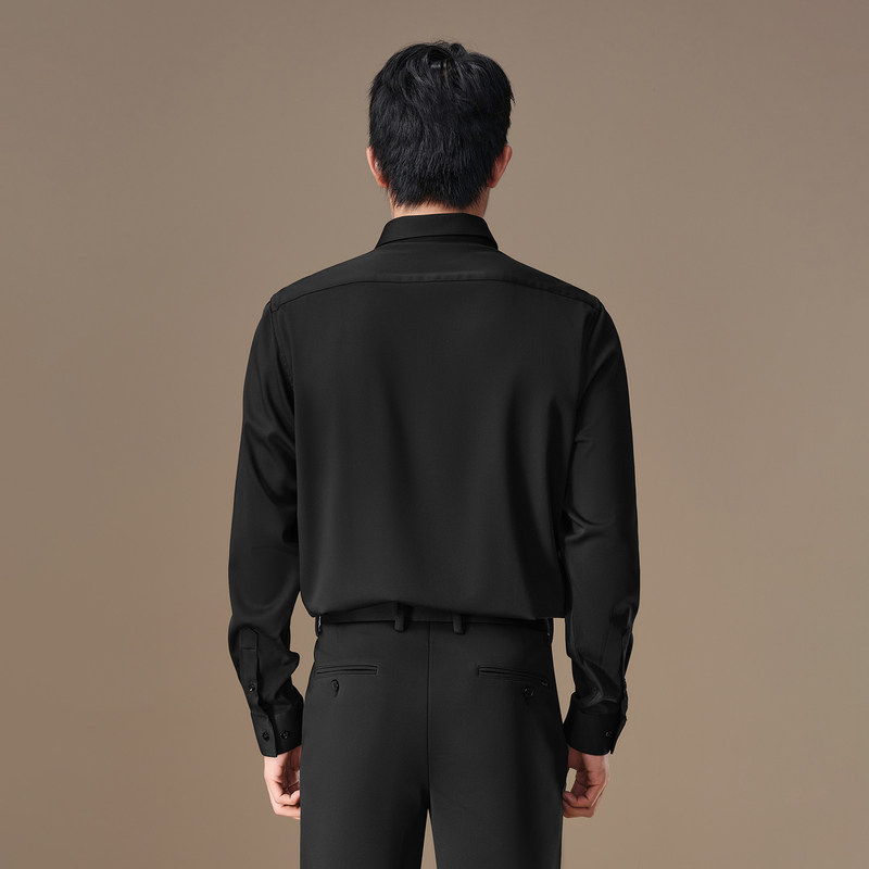 七多男士衬衫修身韩版秋季商务免烫纯色衬衣职业正装白衬衫男长袖