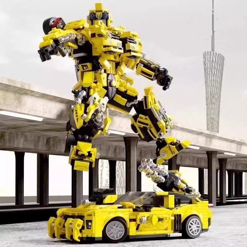 变形积木擎天金刚柱大黄蜂机甲汽车机器人男孩子儿童益智拼装玩具
