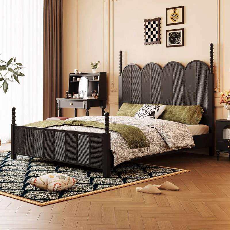 美式复古实木床白腊木主卧1.8m双人床1.5m法式中古风高端大气婚床