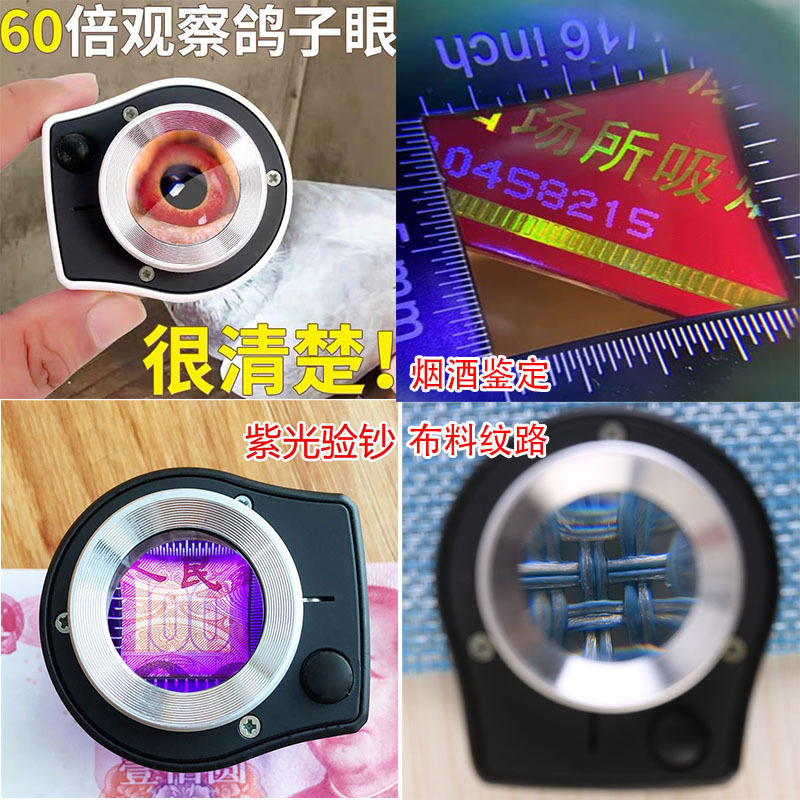 高清60倍照布放大镜带灯充电便携式带刻度鉴定专用维修印刷看鸽眼