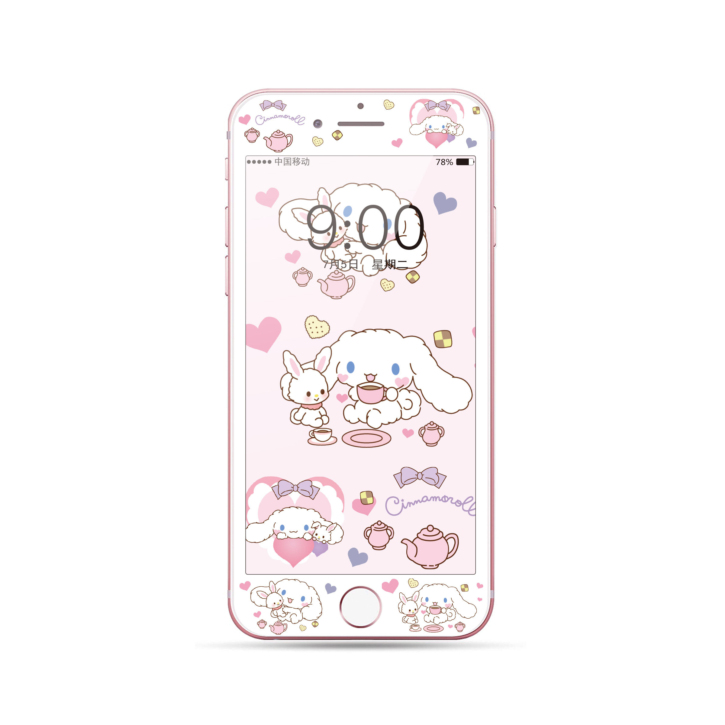 可爱卡通浮雕5c适用苹果5软边钢化玻璃膜iPhone4S全屏覆盖手机贴膜6sPlus高清7少女潮8plus白SE三代se2代新款