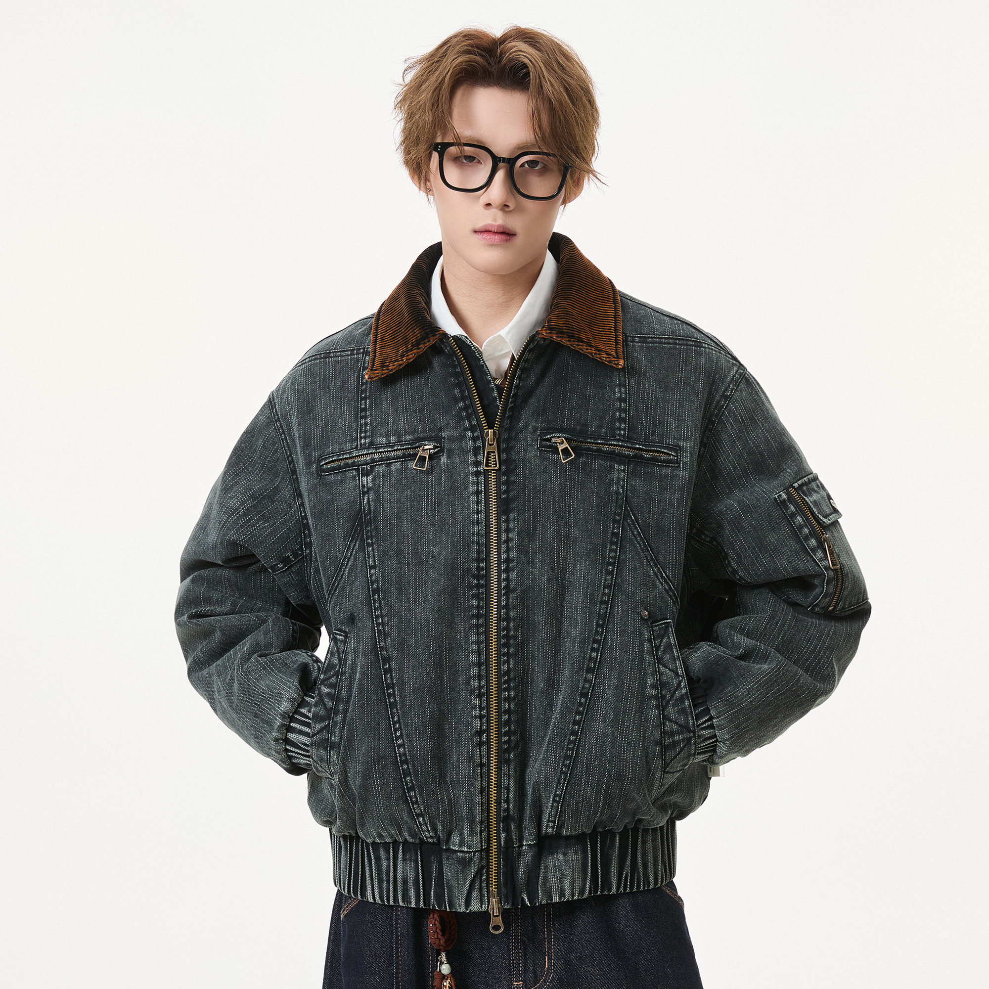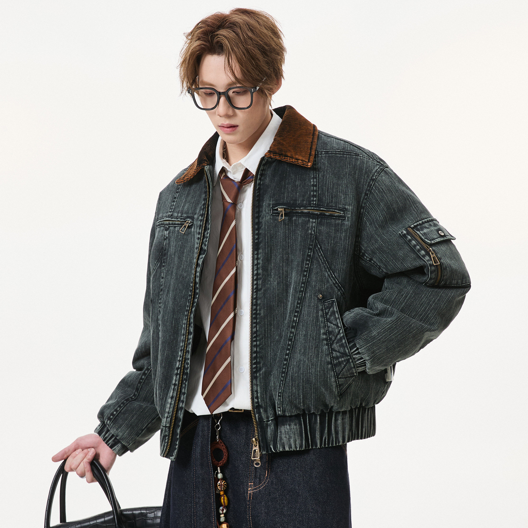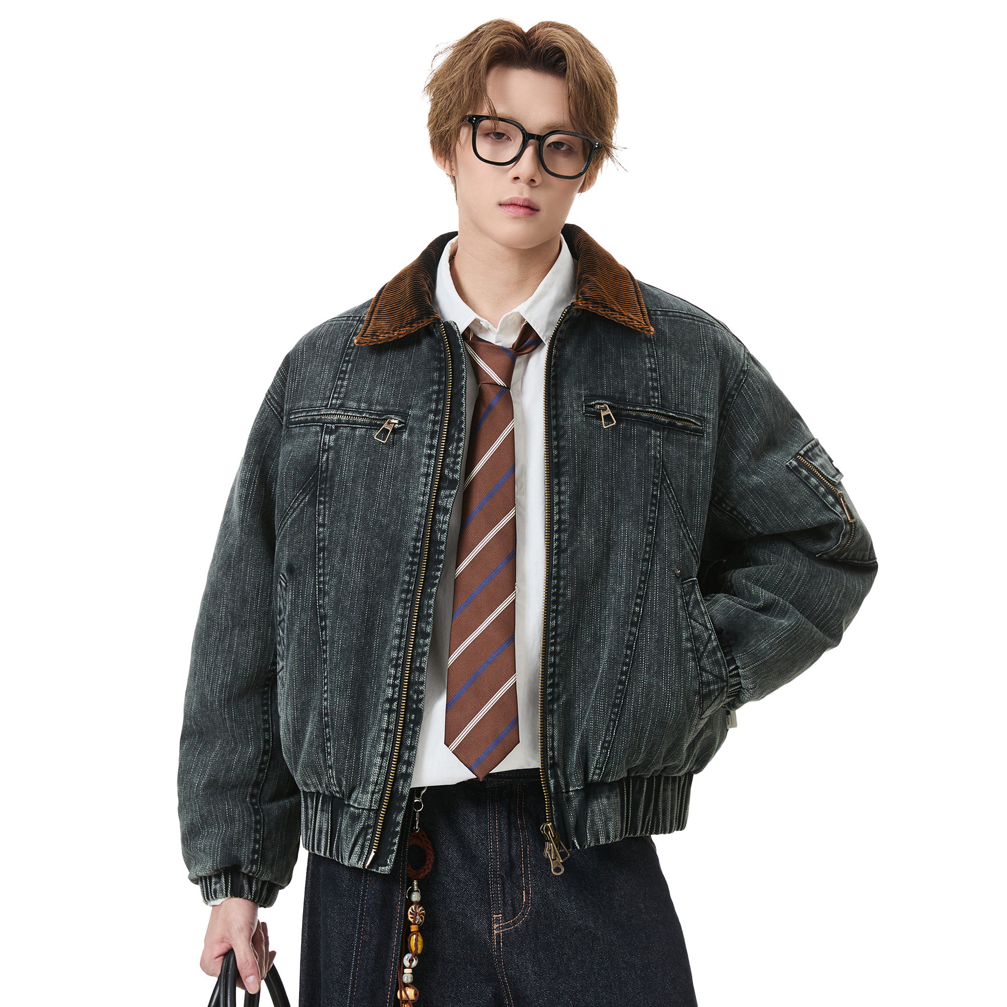 ALLIN 底特律cleanfit翻领羽绒服男秋冬情侣水洗工装牛仔夹克外套