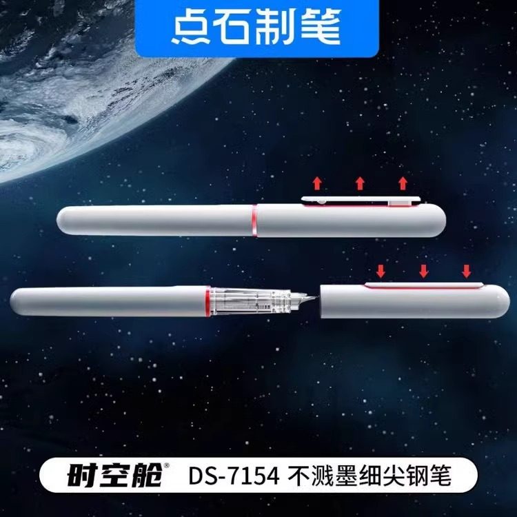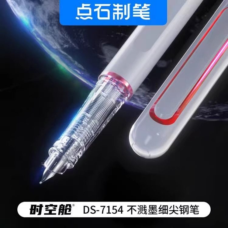 点石时空舱钢笔DS-7154小学生三年级练字书写F尖0.5可替换墨囊墨胆学生用太空舱墨水包尖高颜值创意文具书法