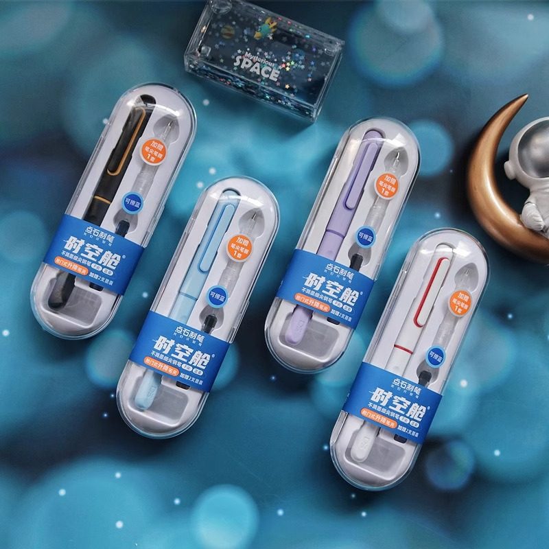 点石二代小舱门按动钢笔DS7158时空舱小学生魔液可擦蓝墨蓝色练字