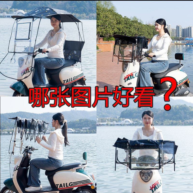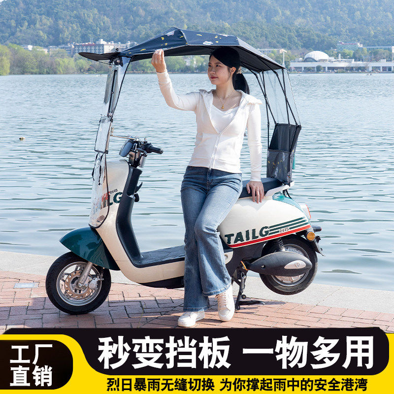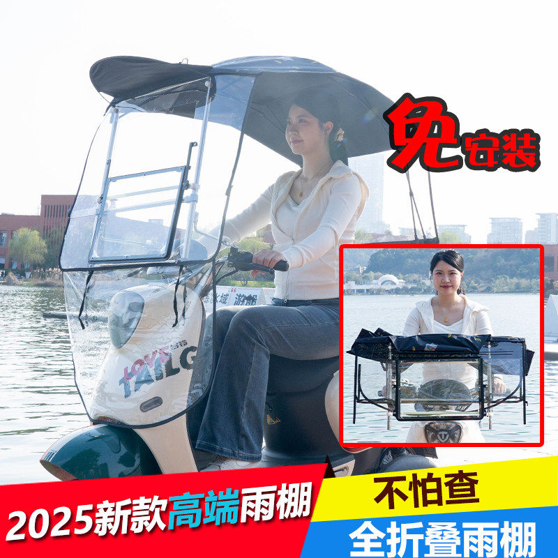 电动摩托车快拆全折叠遮阳暴雨防晒挡风防雨篷闪电开棚免安装升级