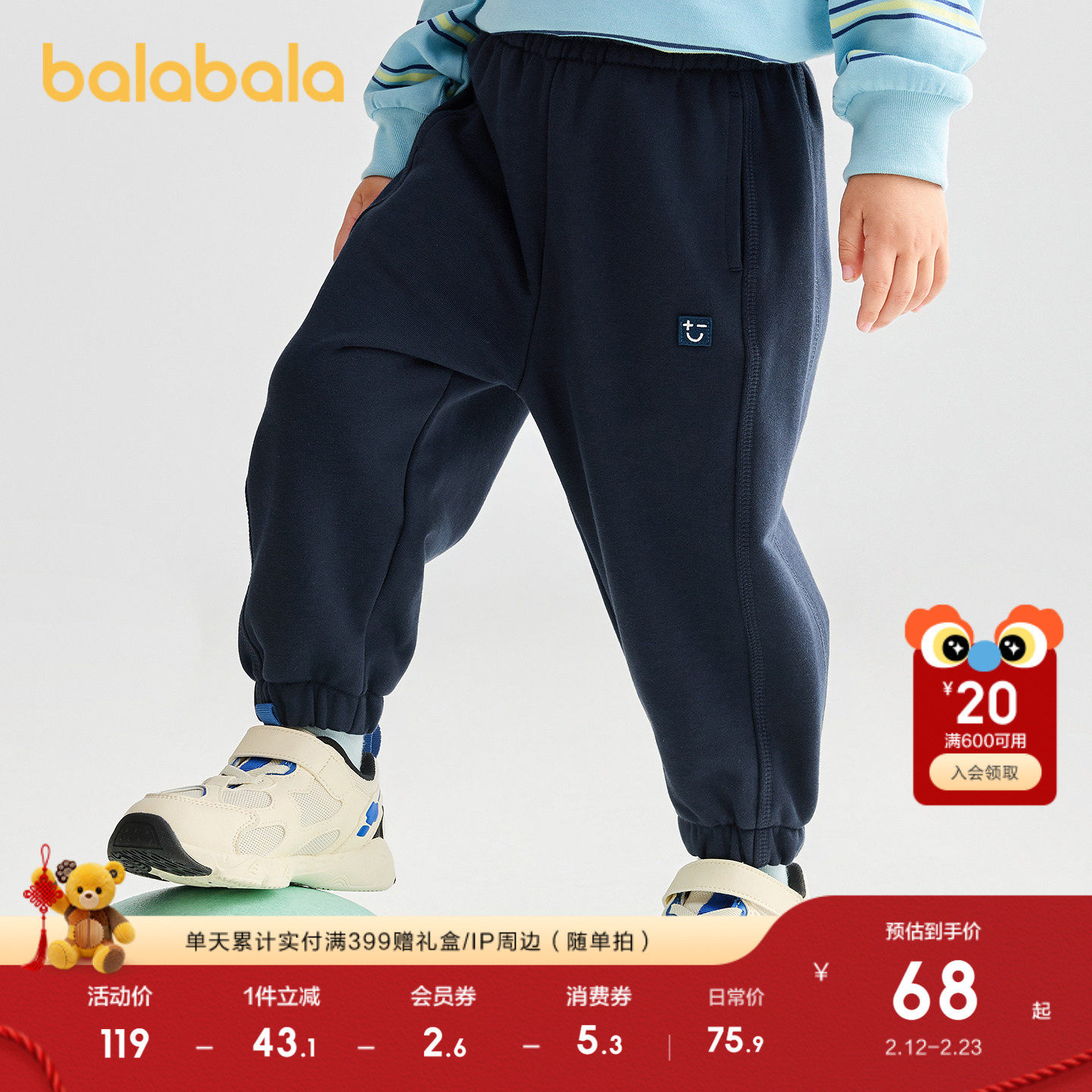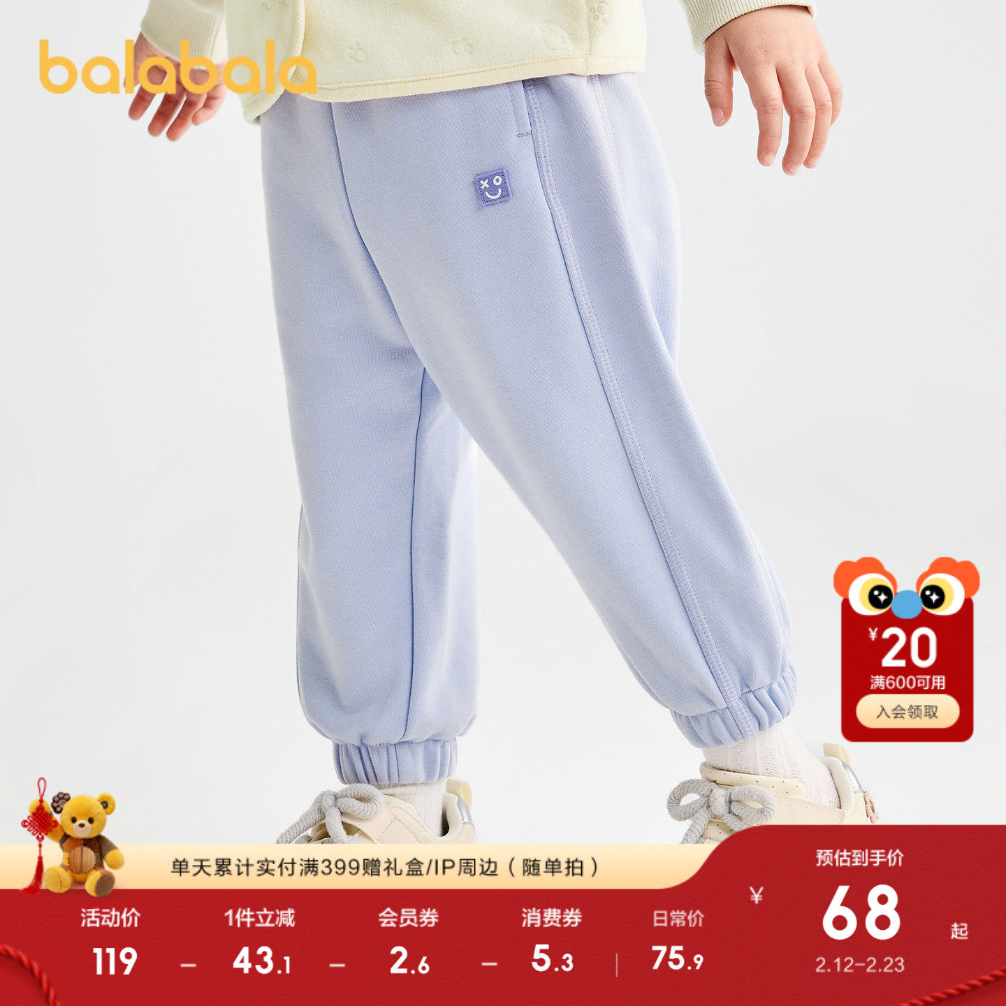 巴拉巴拉童装儿童裤子男女童长裤2025新款秋装慢跑裤运动裤运动裤