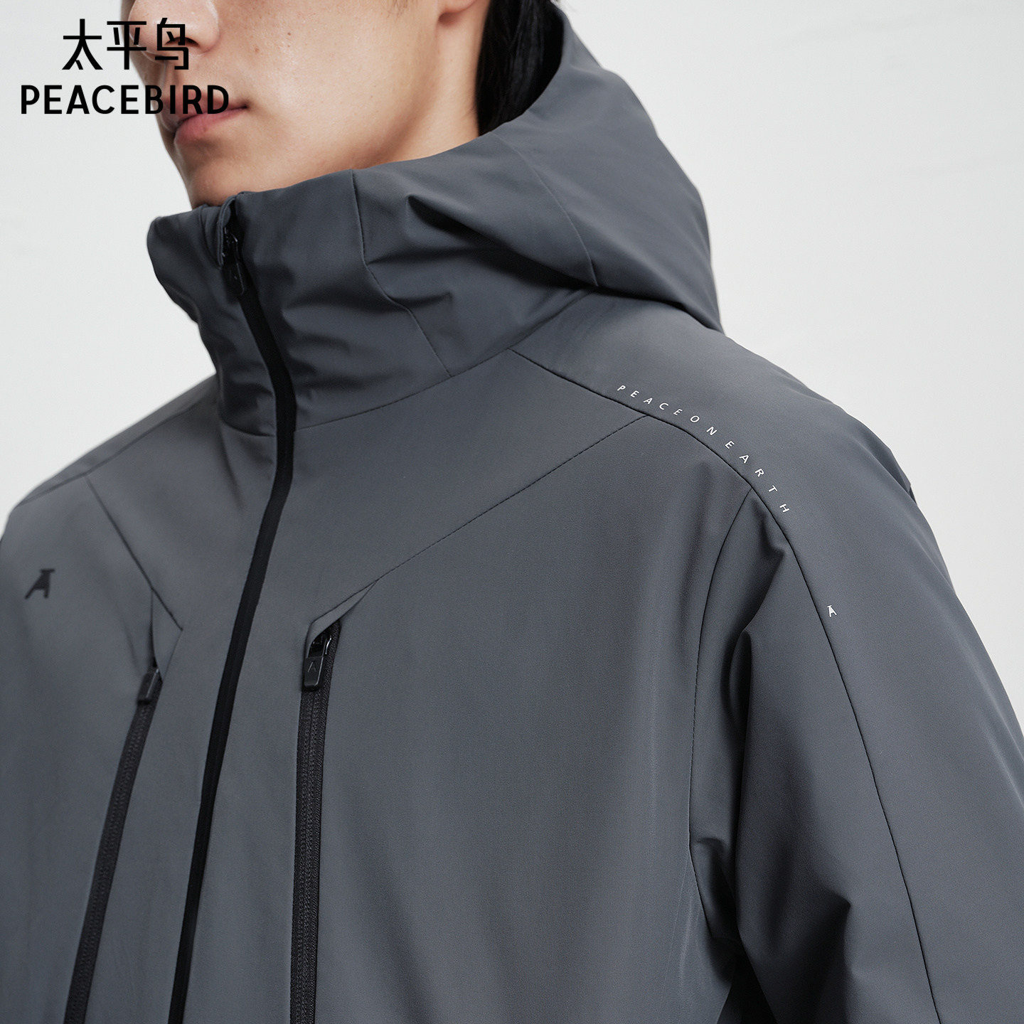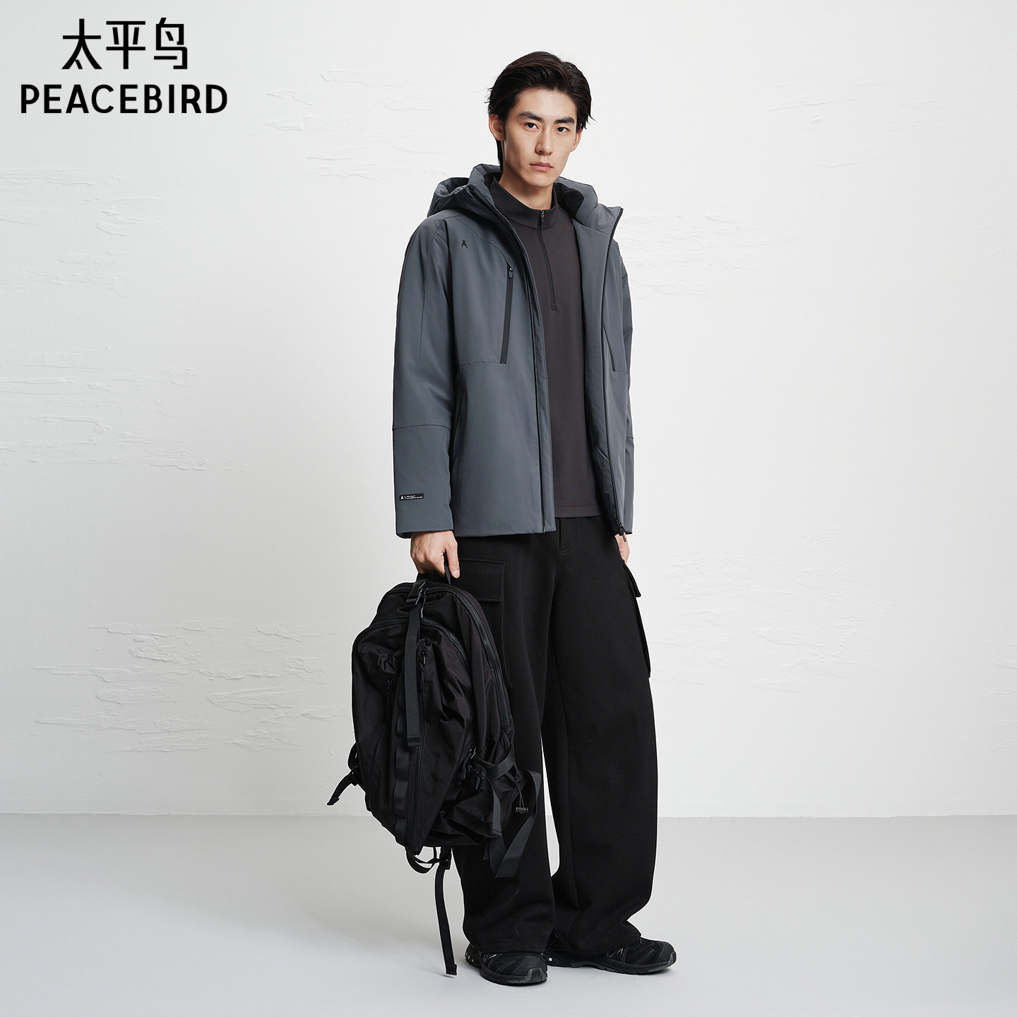 太平鸟男装连帽户外羽绒服冬季保暖时尚潮流印花面包服