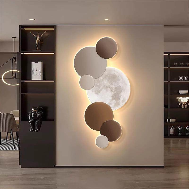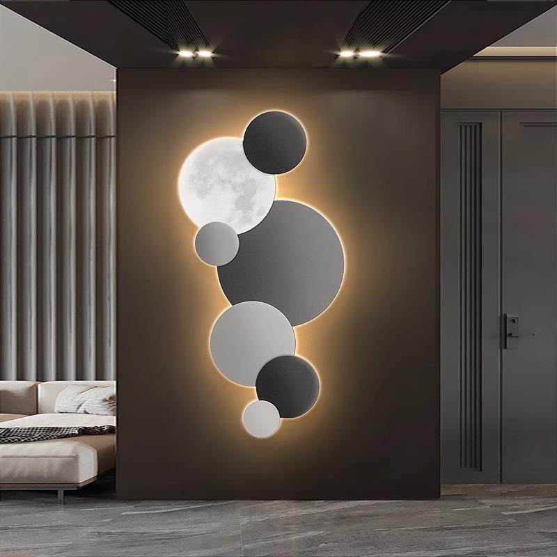 现代轻奢玄关装饰画竖版LED灯壁画高级感走廊过道挂画月亮圆形画