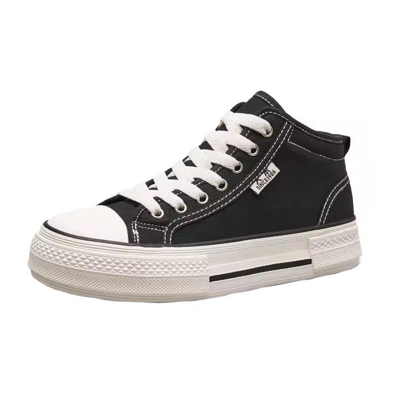 人本加绒高帮帆布鞋女2025秋冬学生平底休闲板鞋黑色韩版保暖棉鞋