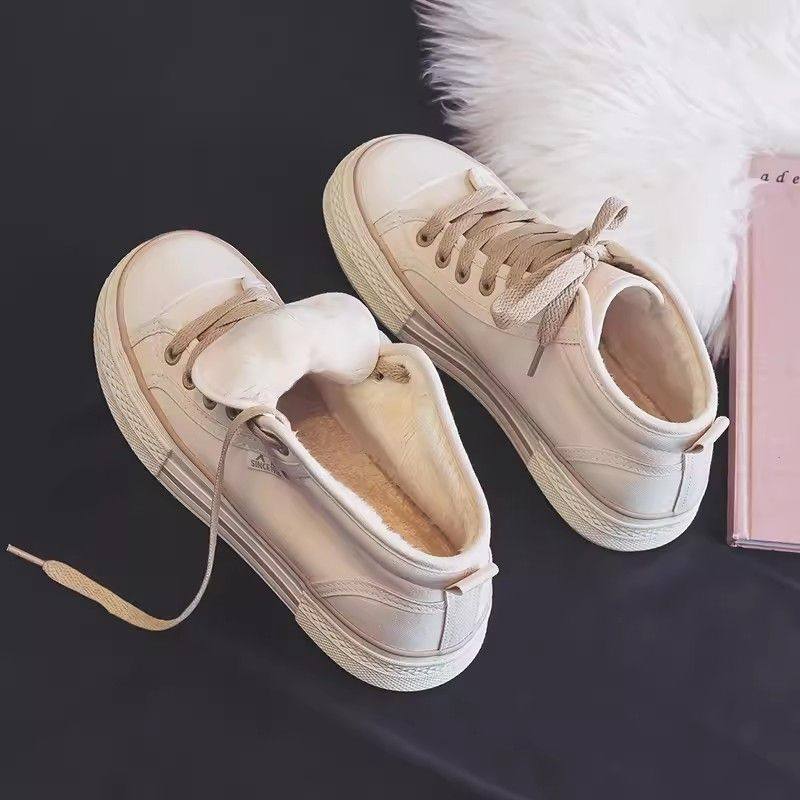 松糕厚底加绒帆布鞋女2025新款冬季保暖毛毛休闲鞋内增高运动板鞋