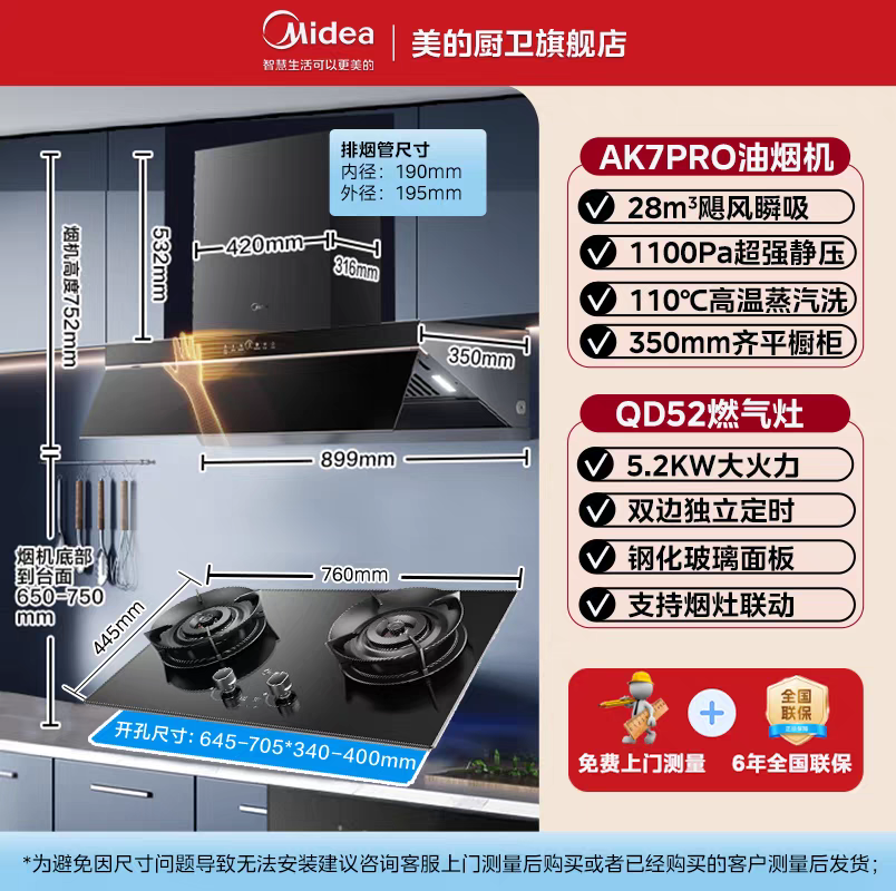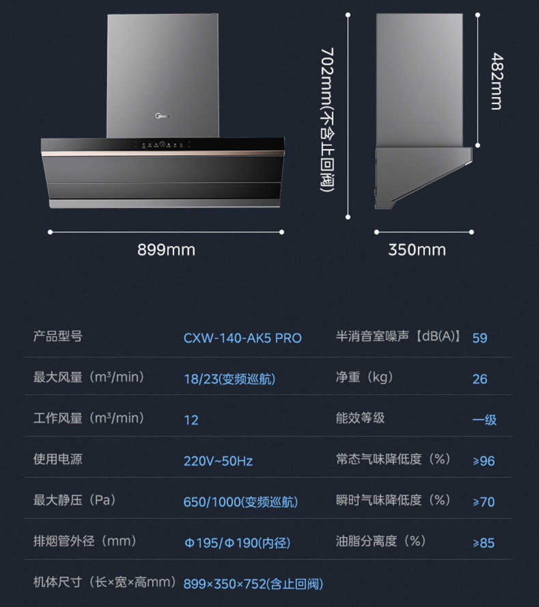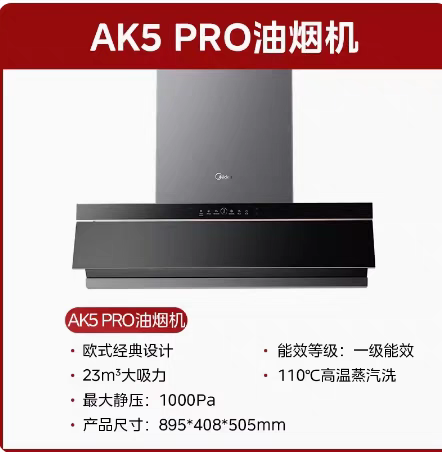 美的蒸汽洗油烟机AK5Pro升级版家用厨房大吸力变频自巡航AK7pro