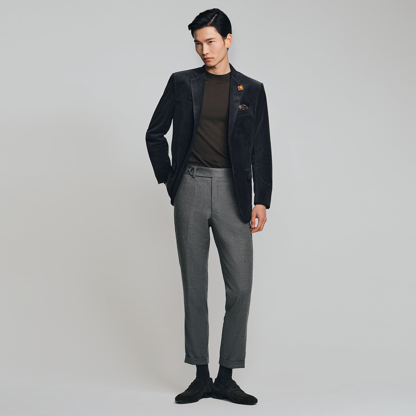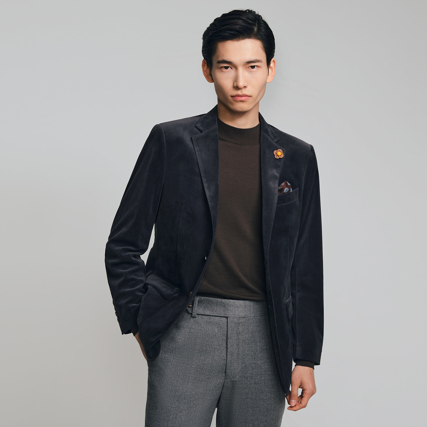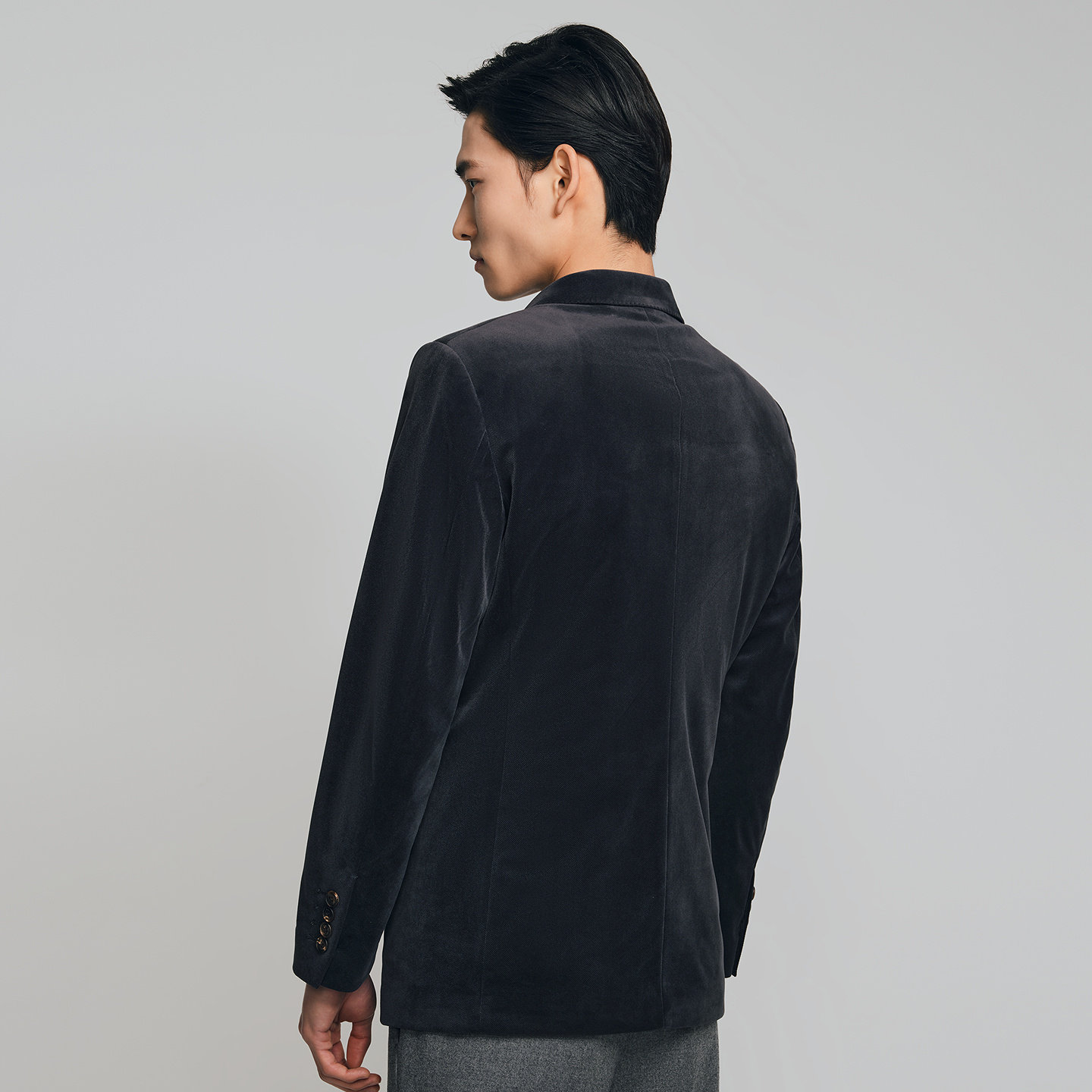 乔顿2025秋冬新款商务休闲单西服男士时尚深灰色灯芯绒修身小西装